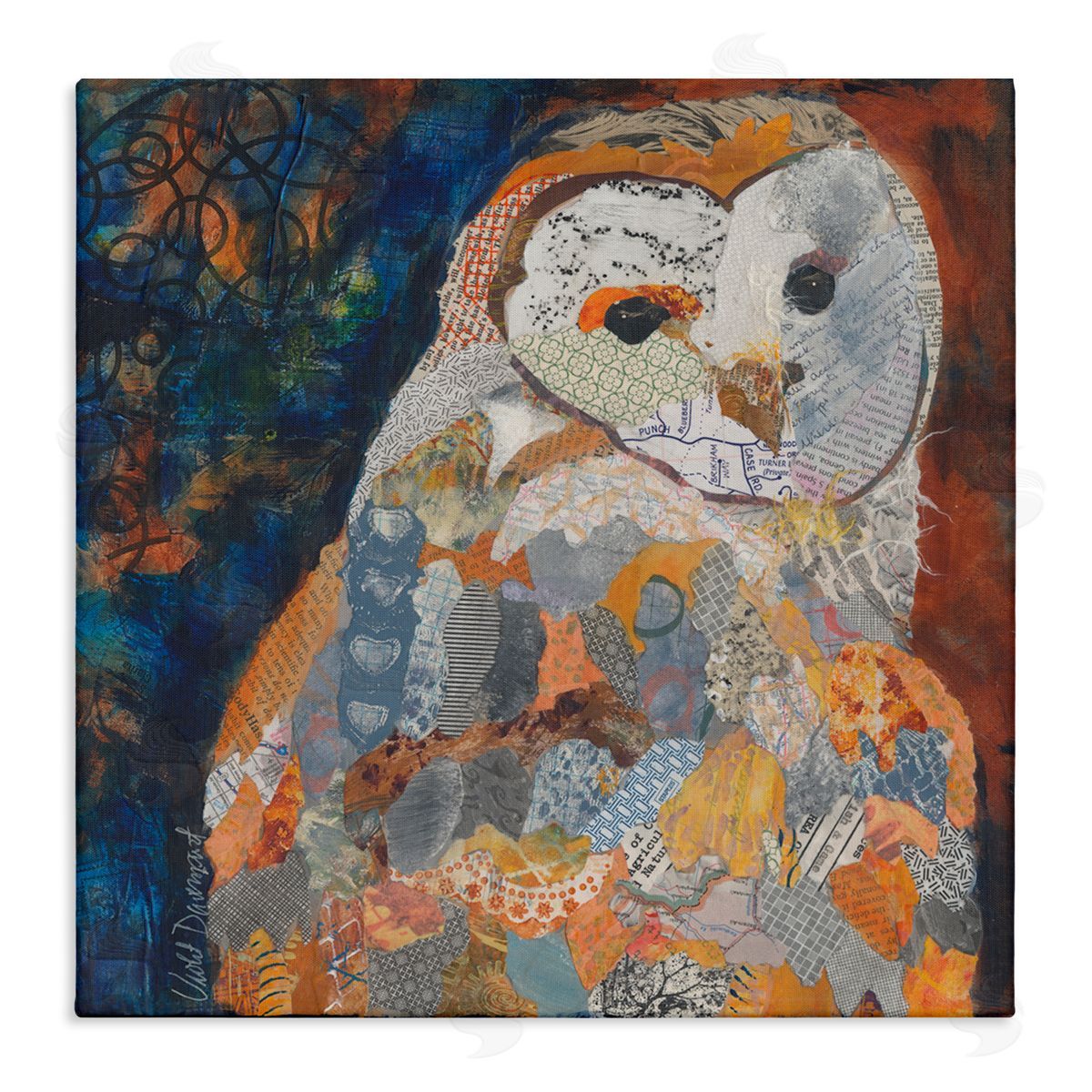 Violet Davenport became interested in art at a young age. She tried many techniques before arriving at collage: drawing, painting, paper mâché, jewelry-making, scrapbooking, and photography. Nothing seemed to hold her interest quite as much as collage. Starting with a simple class 15 years ago, she has been hooked ever since. She believes half the fun is painting her papers to use in later creations. Always on the lookout for materials to use in her work, her collage art incorporates old books, maps, sheets of music, restaurant menus, and other interesting paper finds. She rips up her painted papers and finds items to assemble them into vibrant birds, flowers, or animals exploding with color. She adores the messy, carefree process that collage offers.