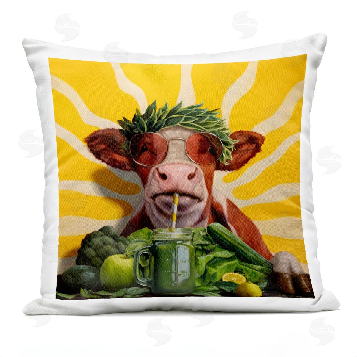 Lucia Heffernan | Cow with Healthy Green Smoothie Printed Throw Pillow