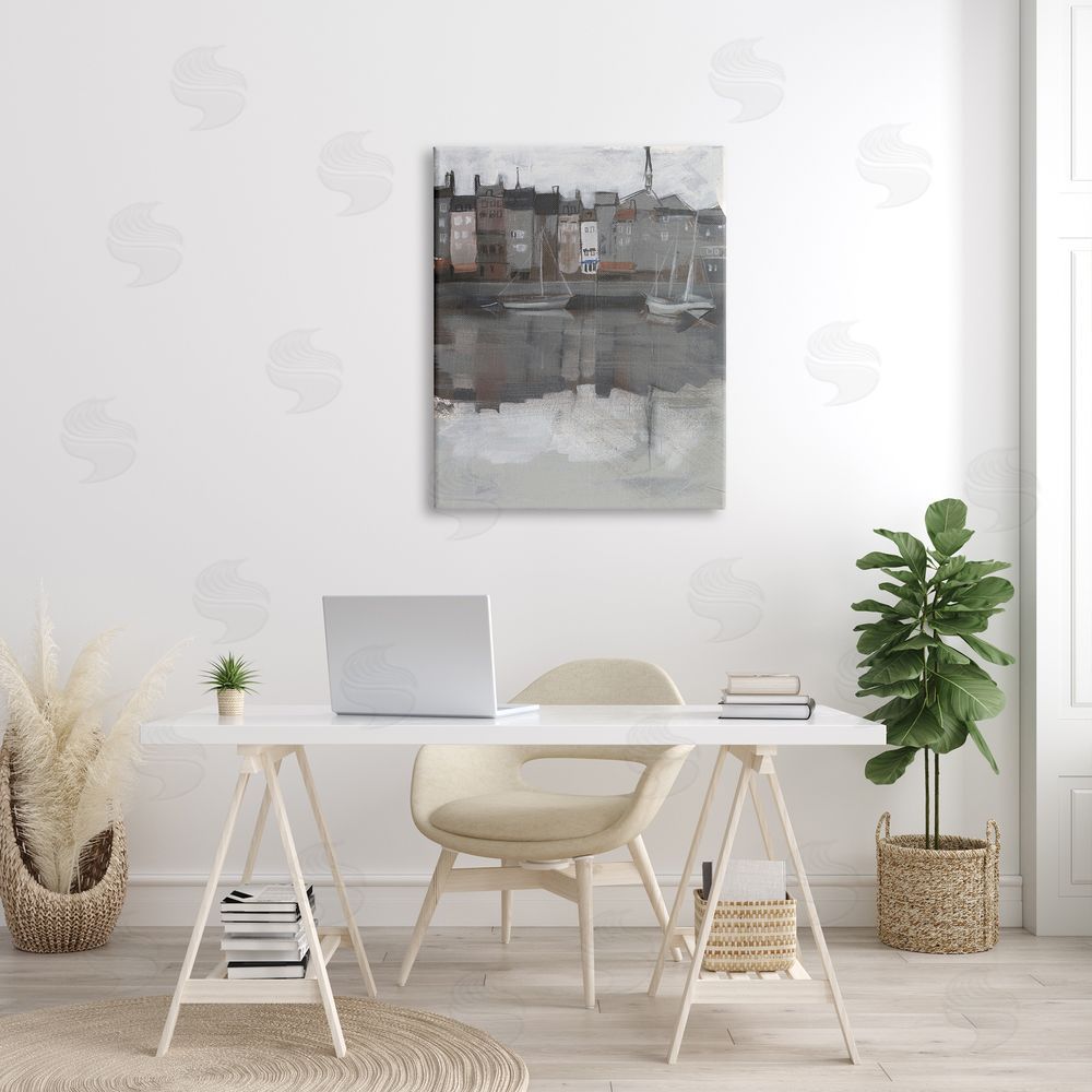 Jennifer Paxton Parker | Dark Sailboat Seaport Murky Coastal City Landscape