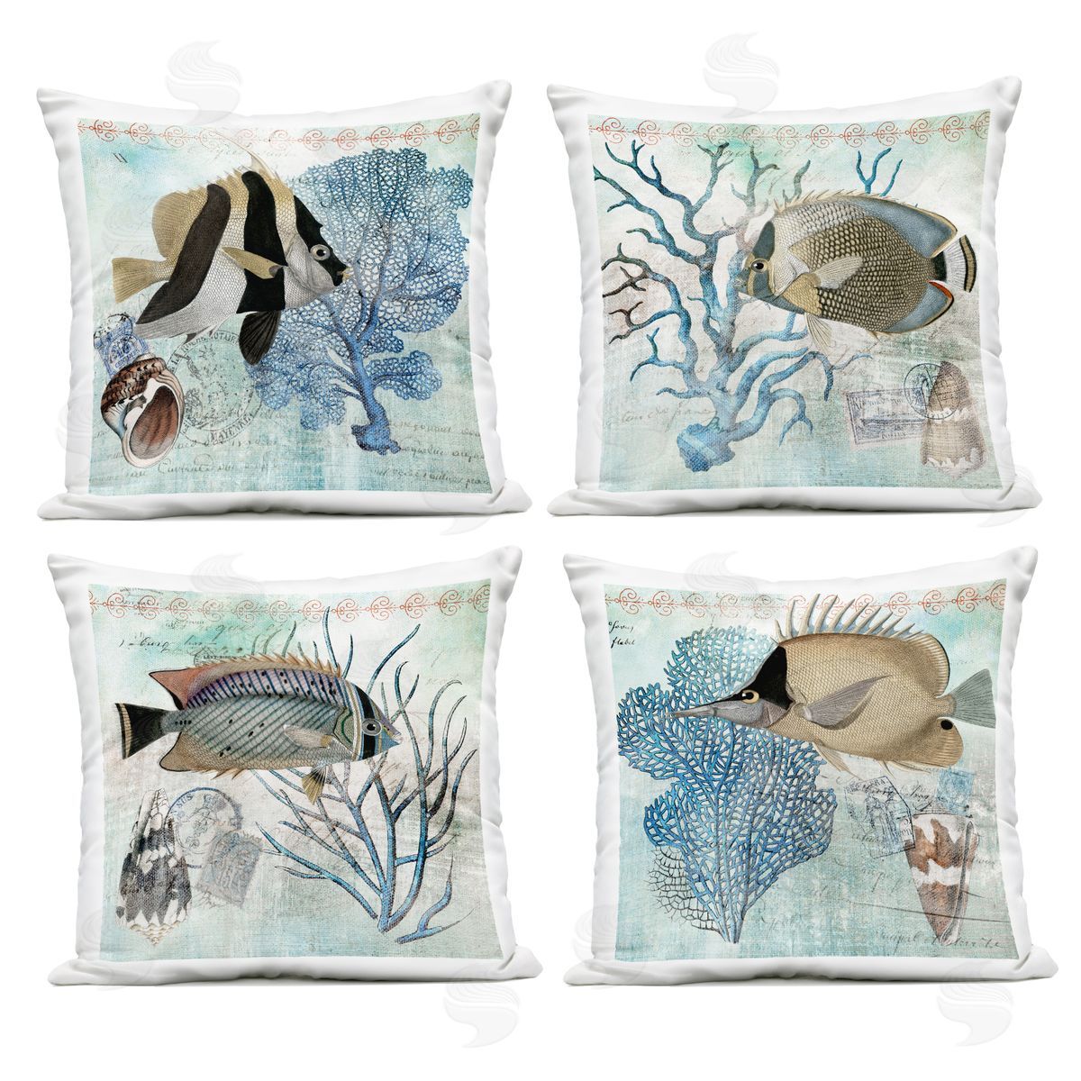 Susan Arnot | Tropical Fish & Coral Collages Printed Throw Pillow Set