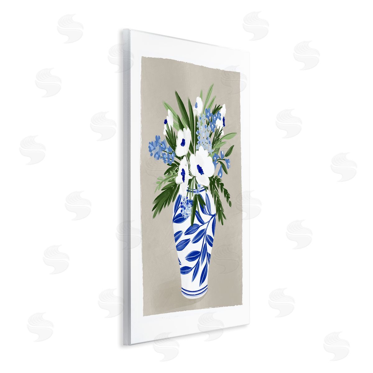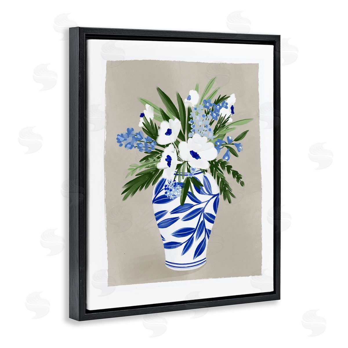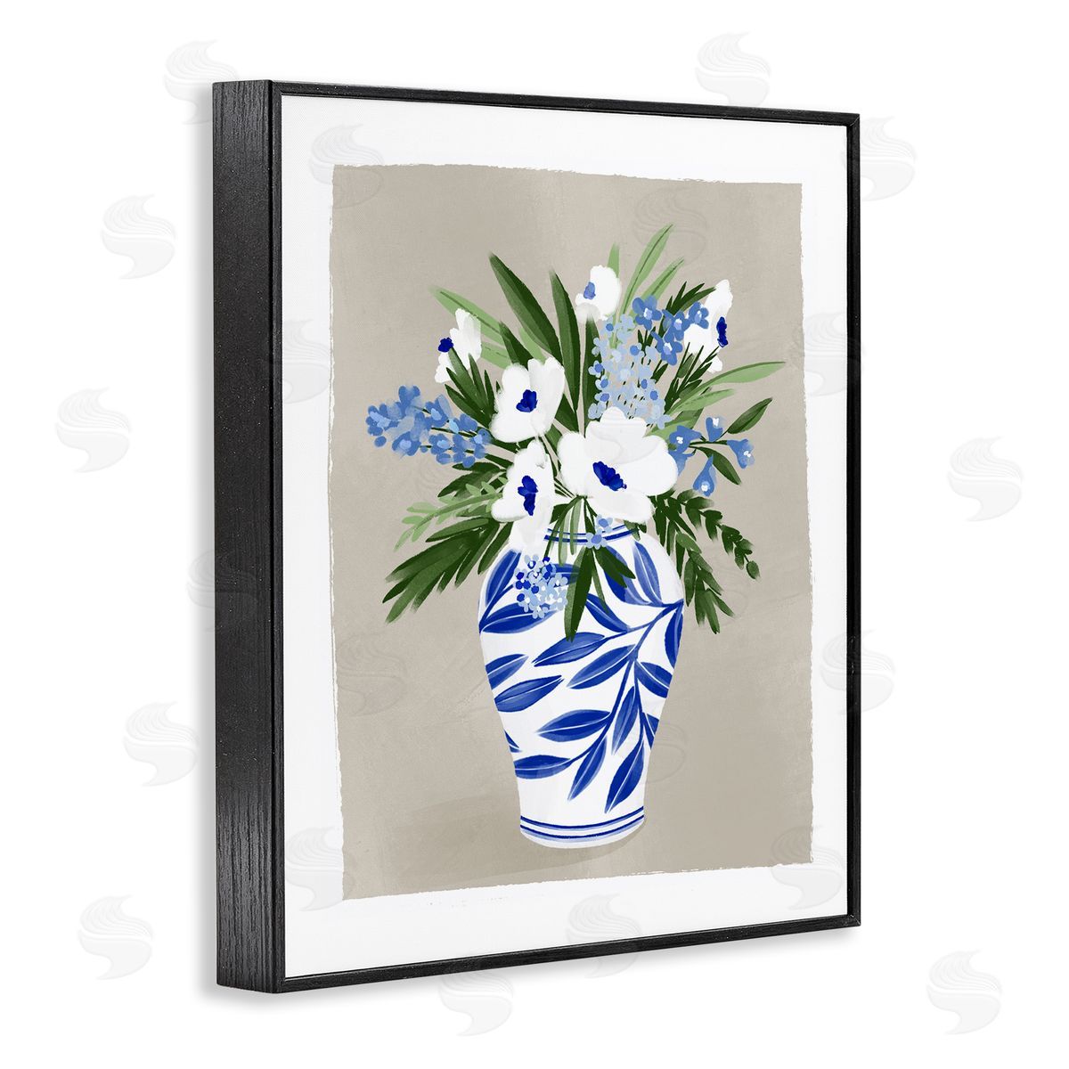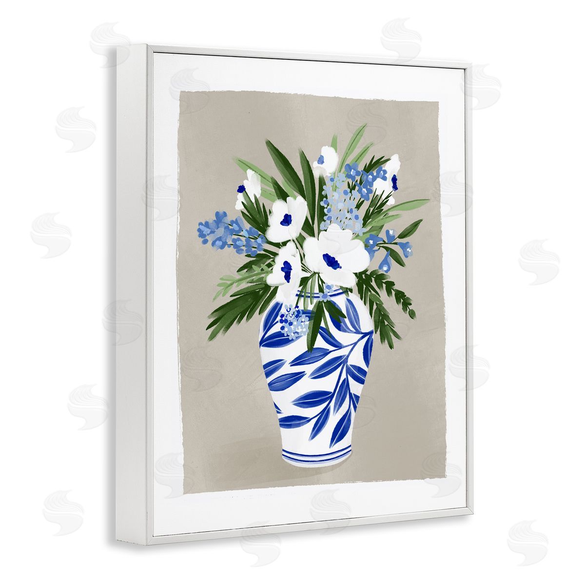 Doodles.Ink. | White Poppies Flower Leaves Traditional Chinoiserie Pattern Vase