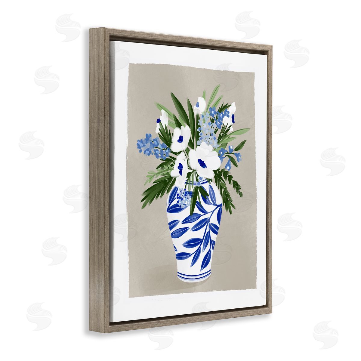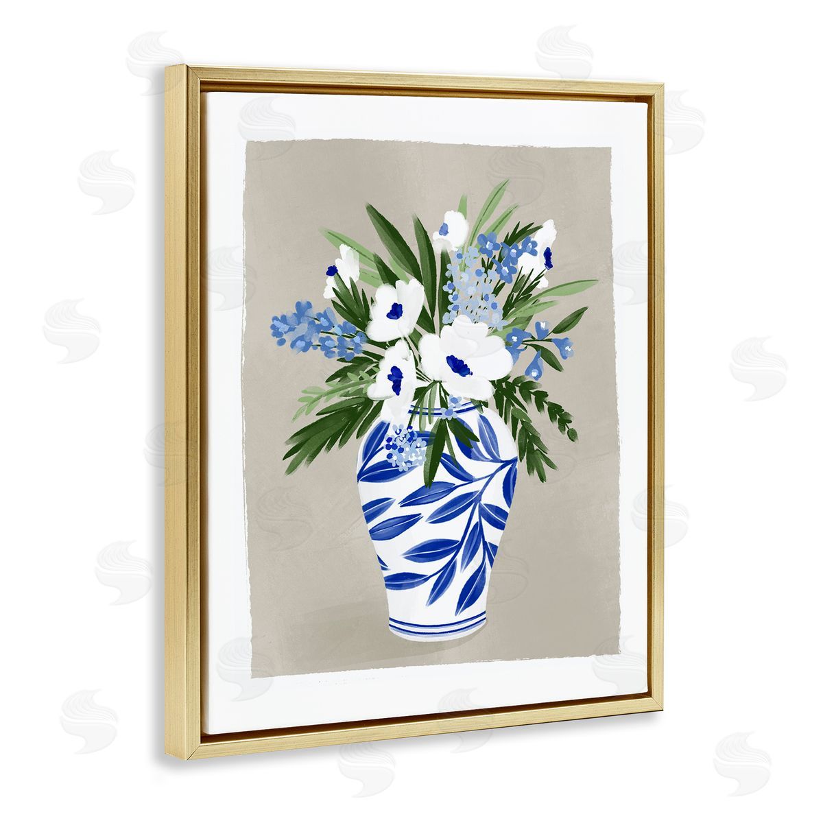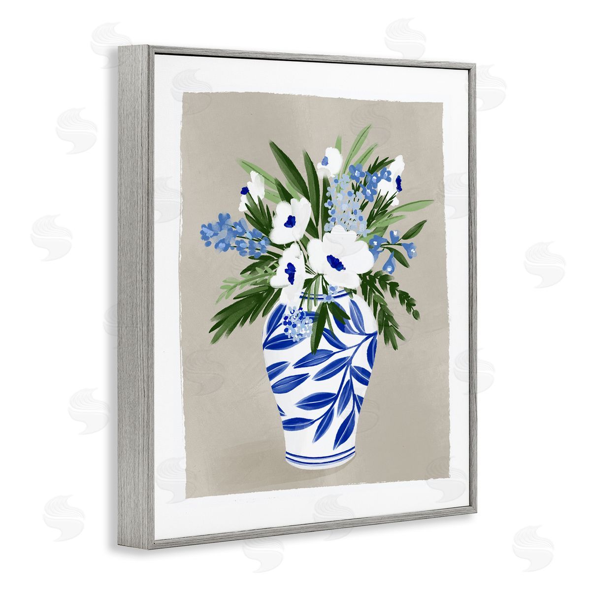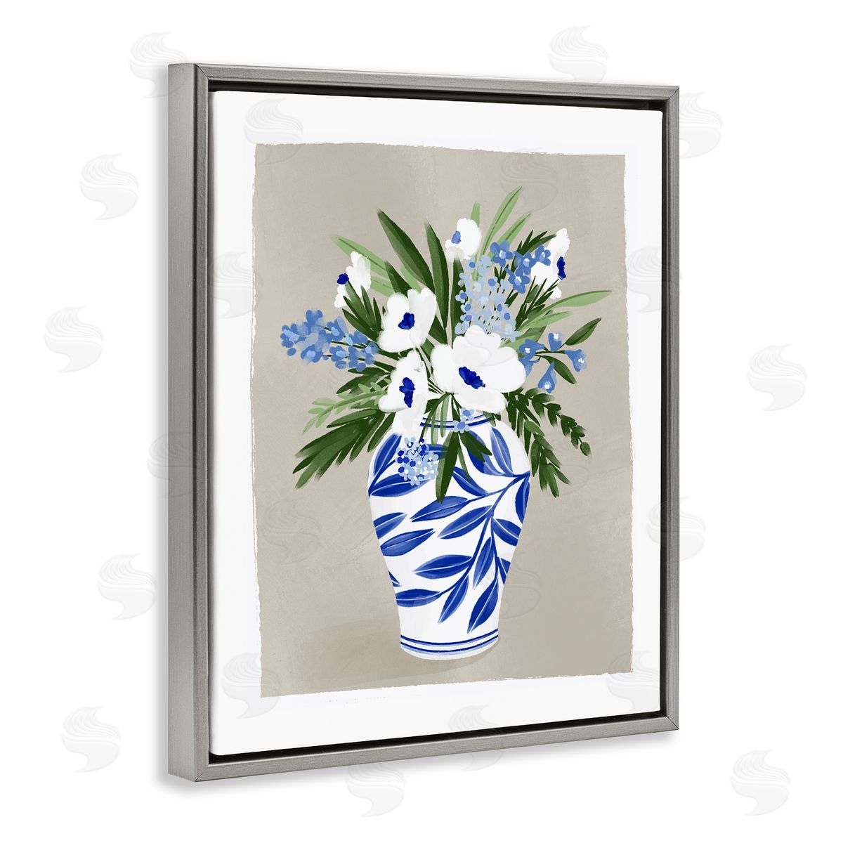 Doodles.Ink. | White Poppies Flower Leaves Traditional Chinoiserie Pattern Vase