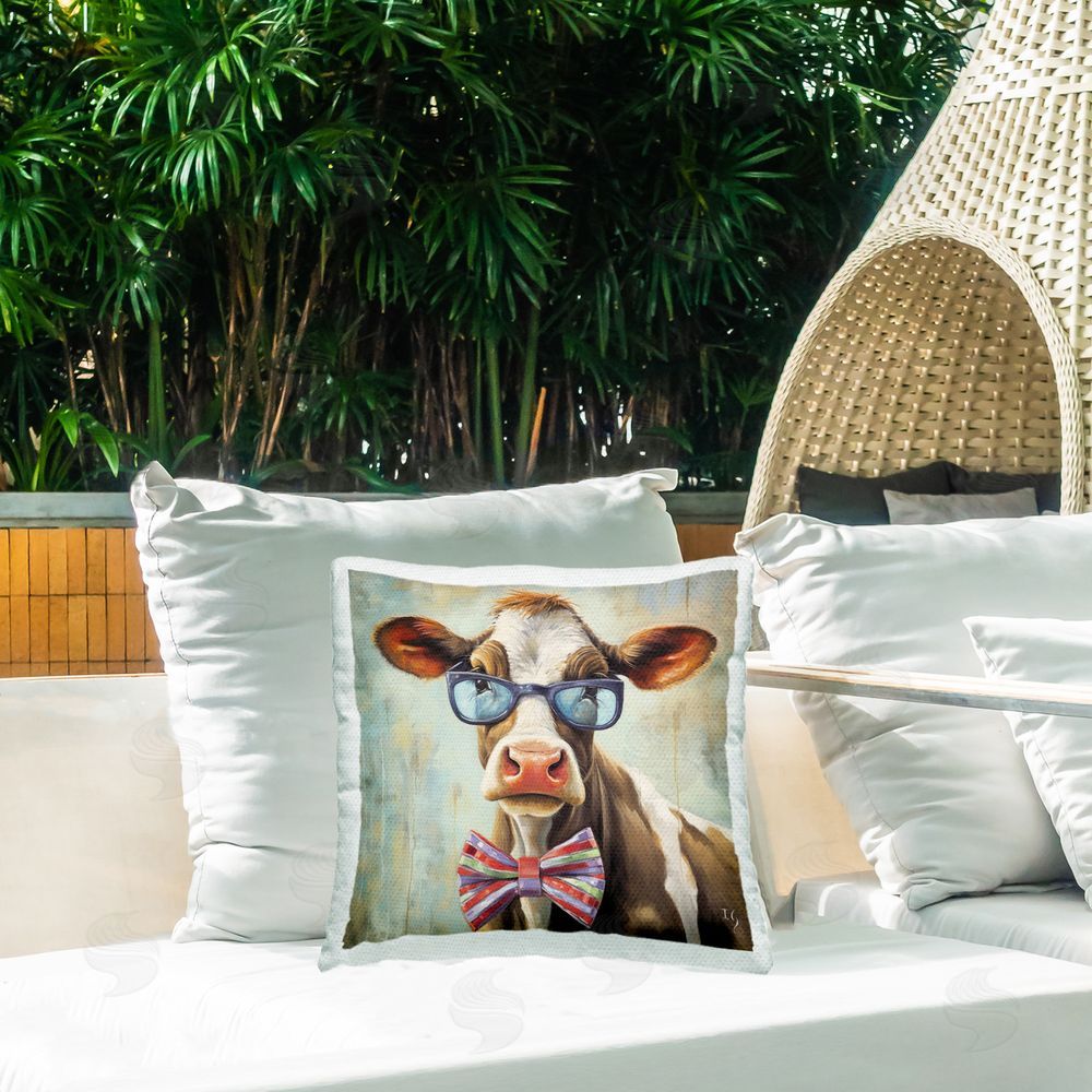 Ivan Guaderrama | Hipster Cow with Bowtie Printed Throw Pillow