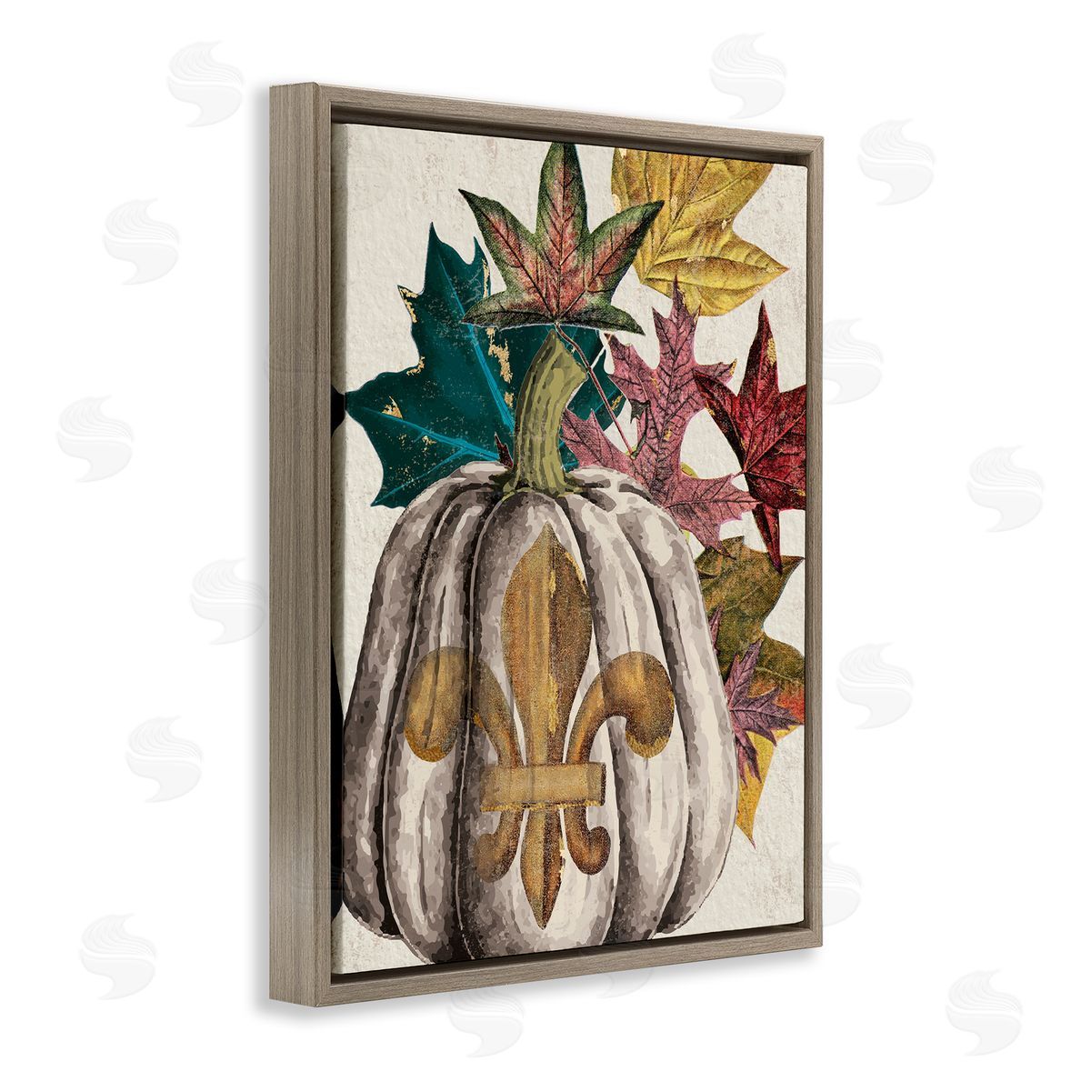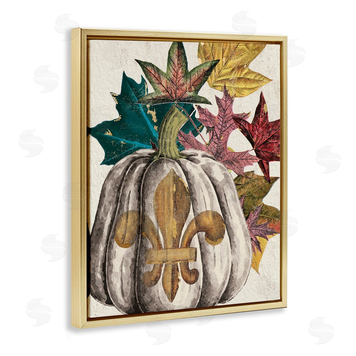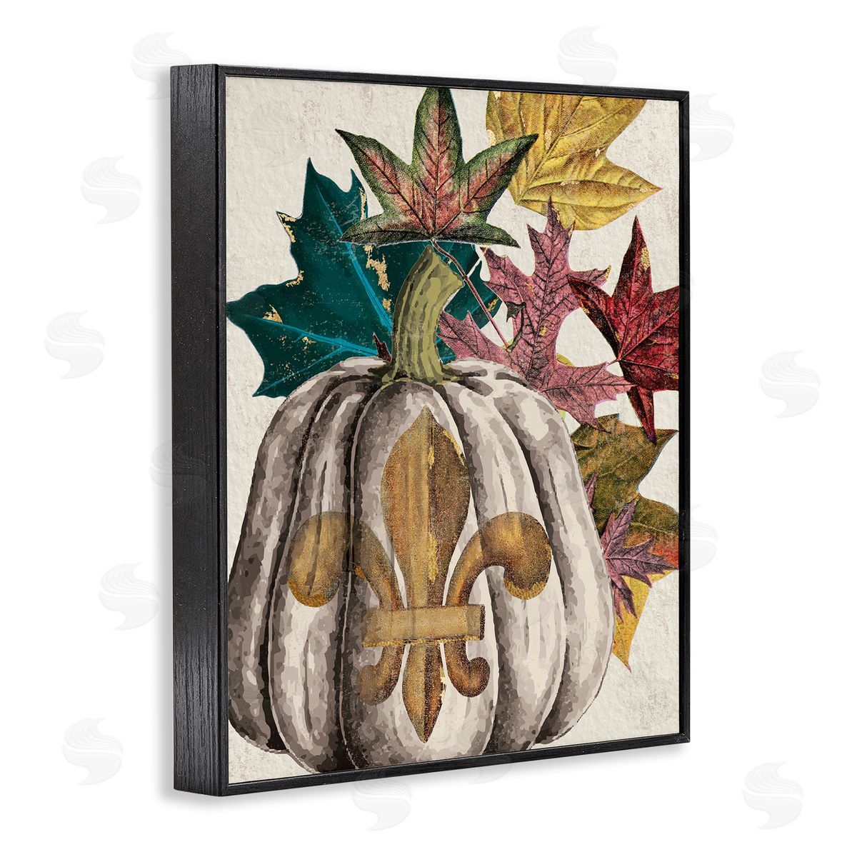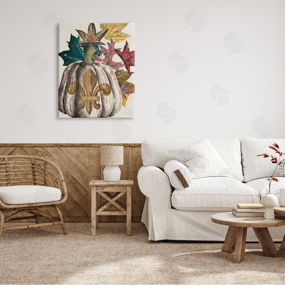 Stupell Studio | Fleur-de-lis Crest Pumpkin Vintage Autumn Leaf Arrangement