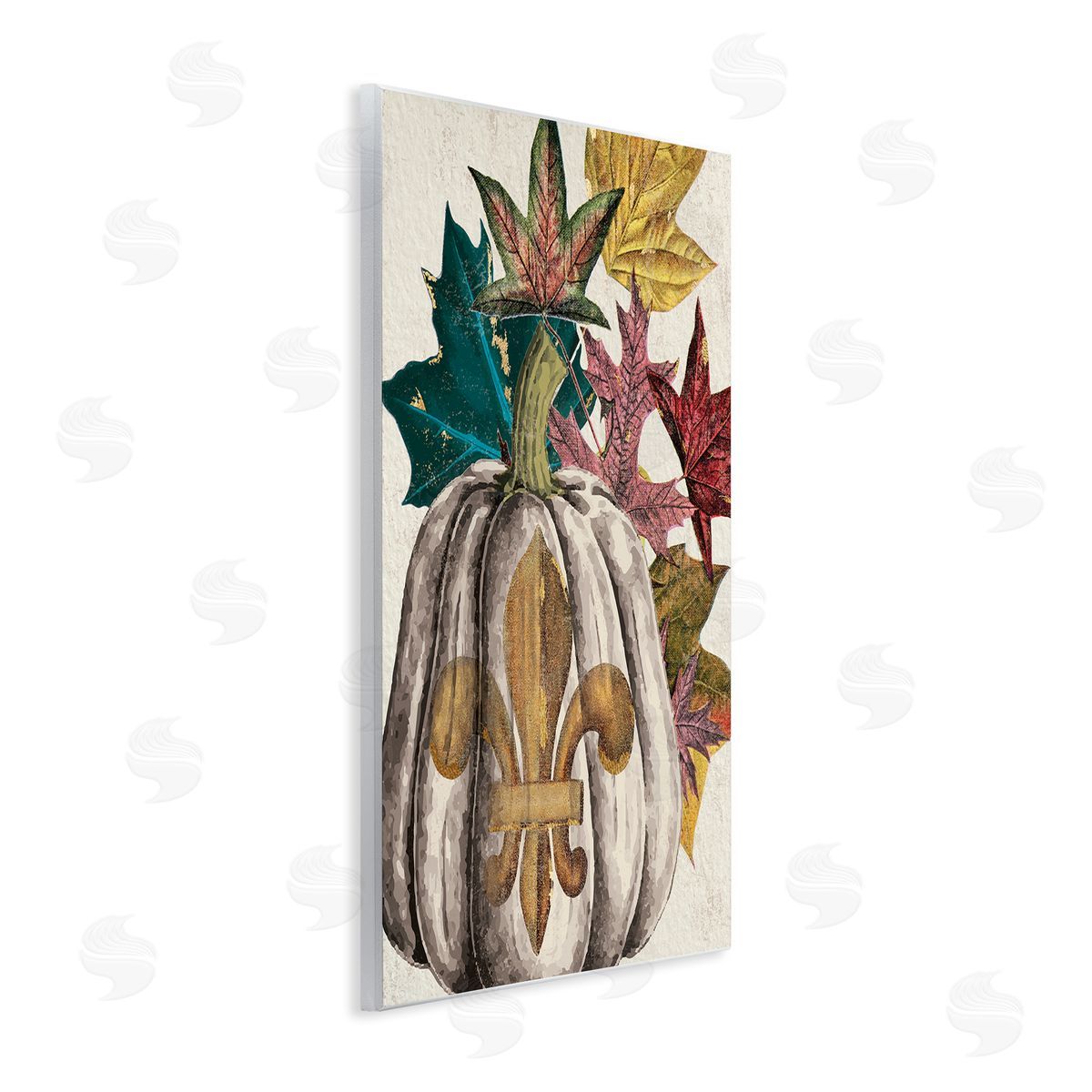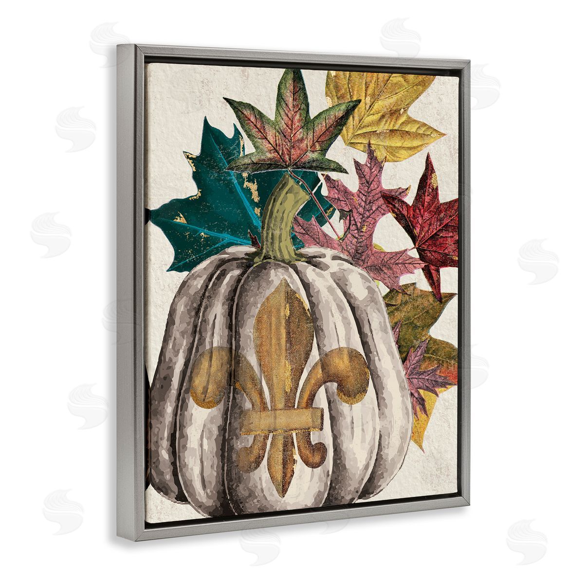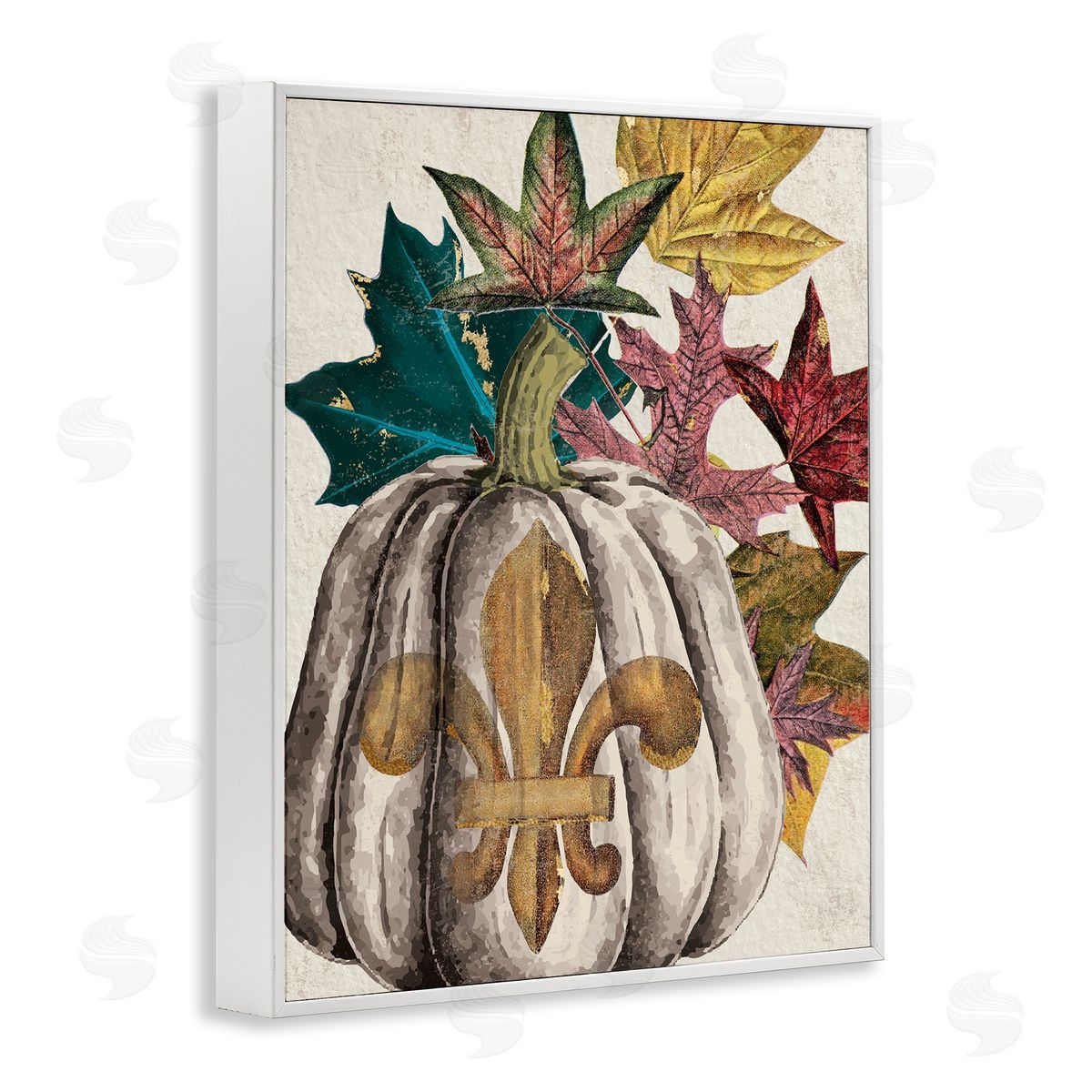 Stupell Studio | Fleur-de-lis Crest Pumpkin Vintage Autumn Leaf Arrangement