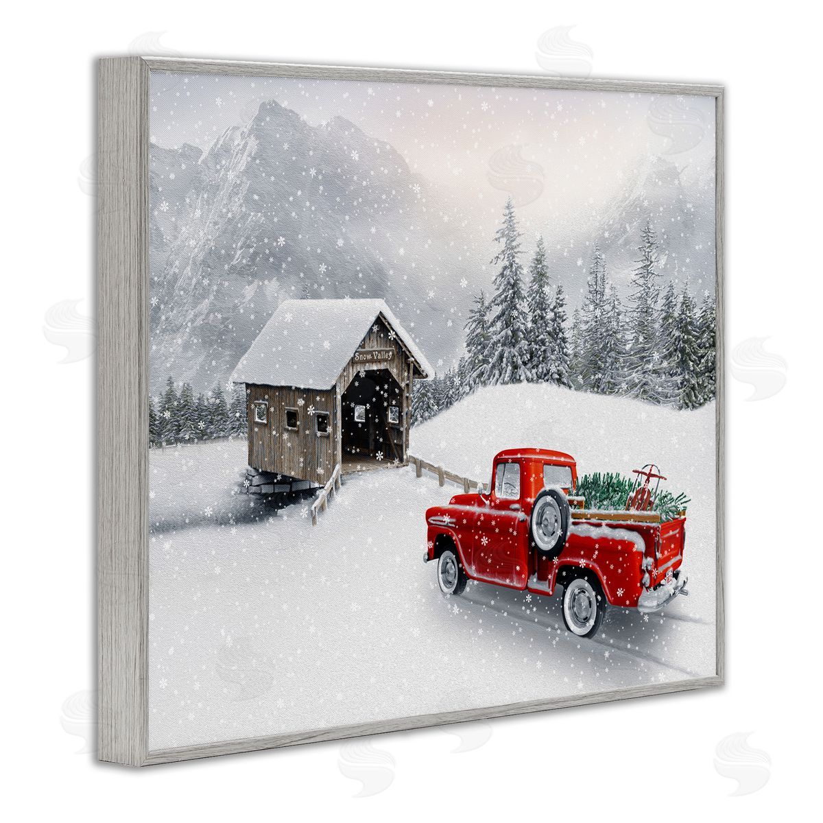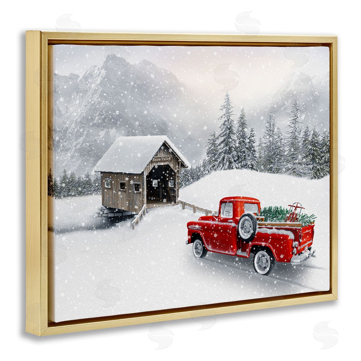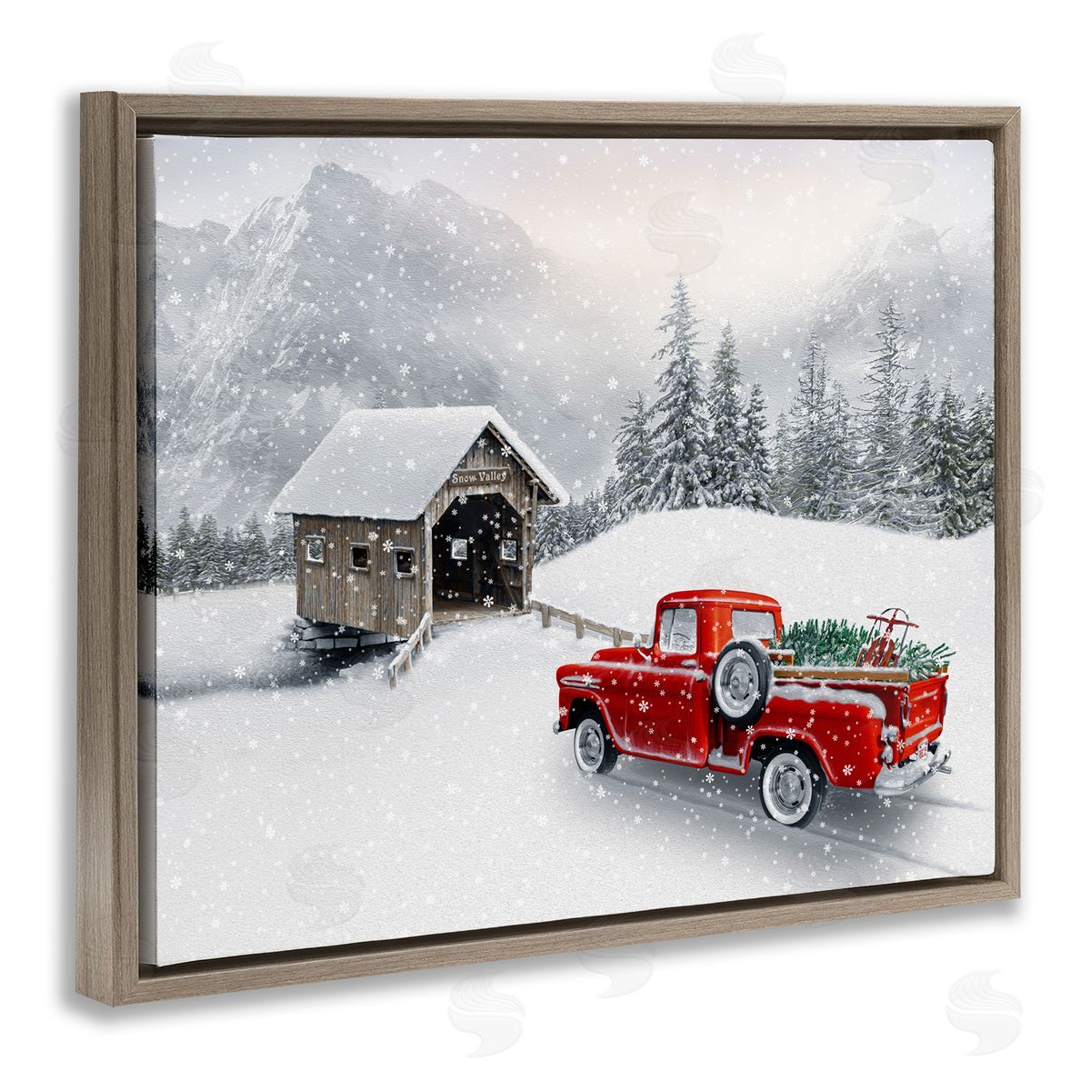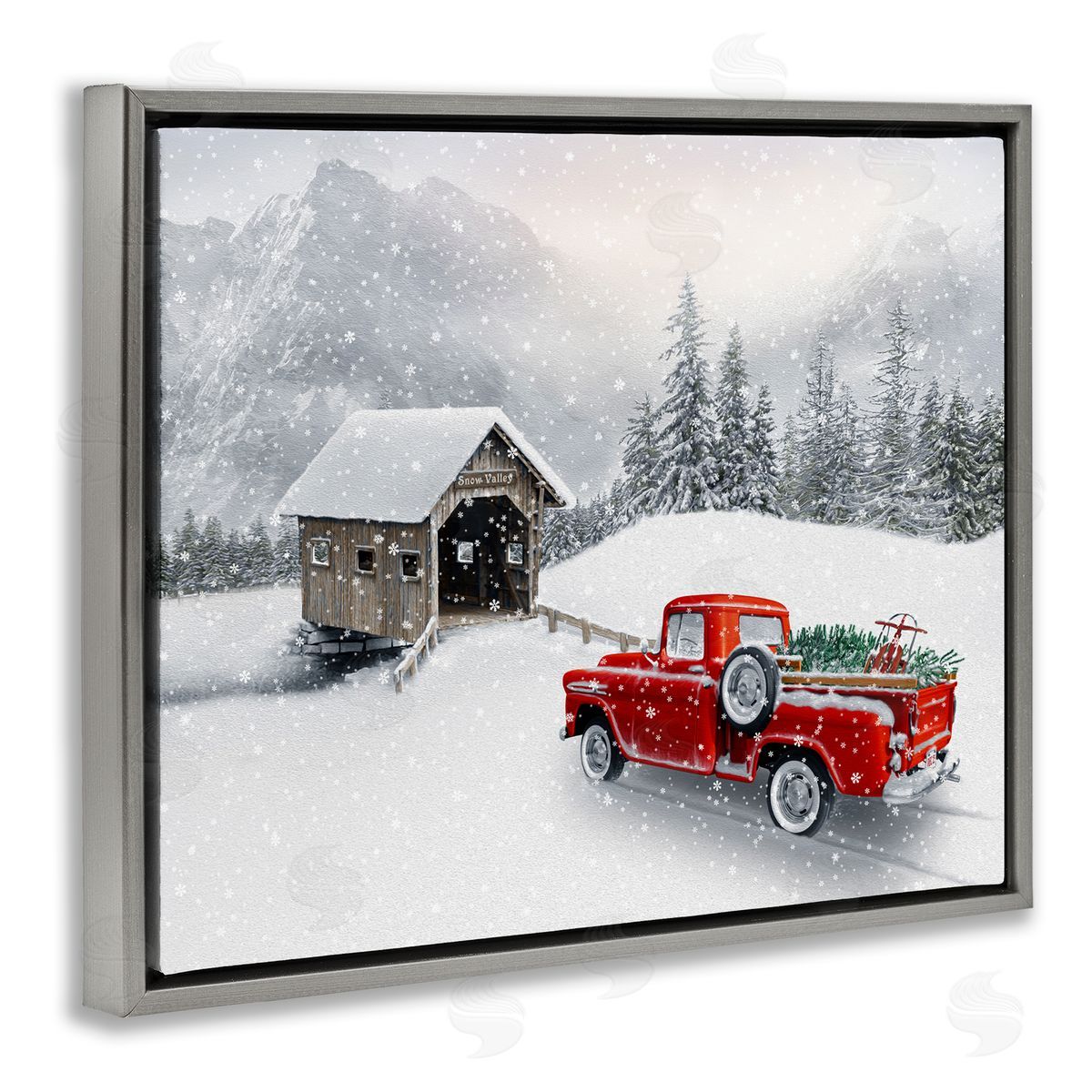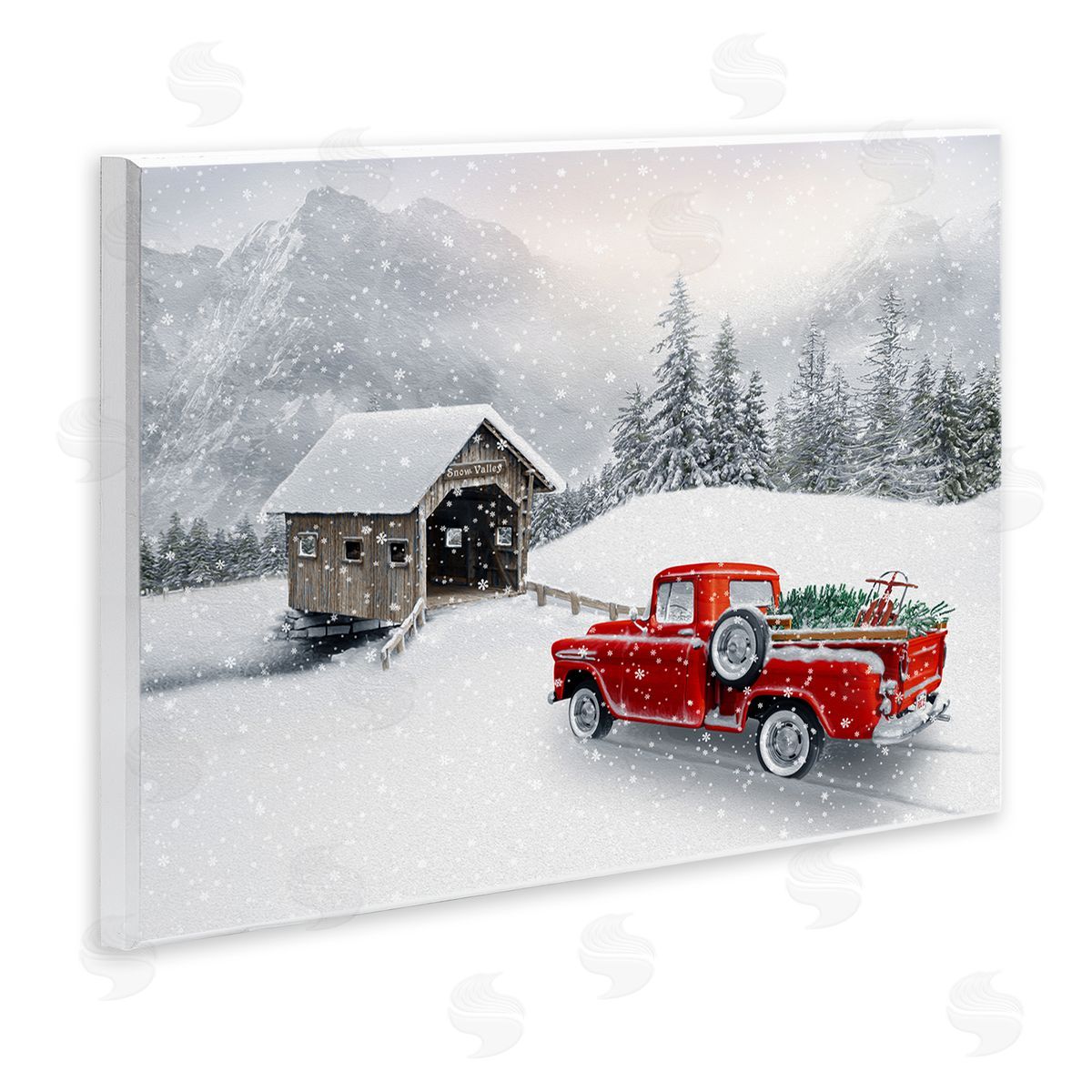 Michael Shelton | Relaxing Snowcapped Mountain Scenery Vintage Red Truck