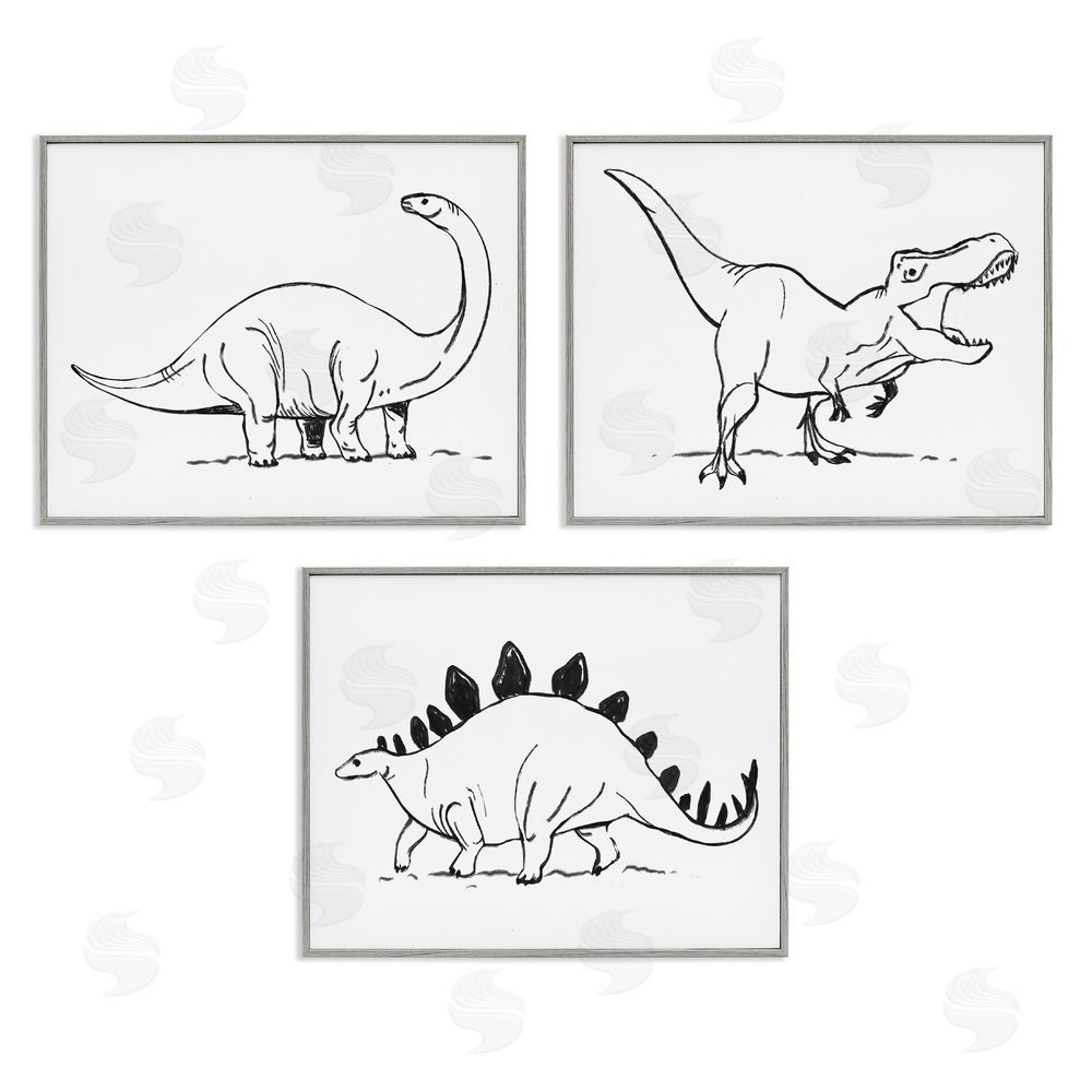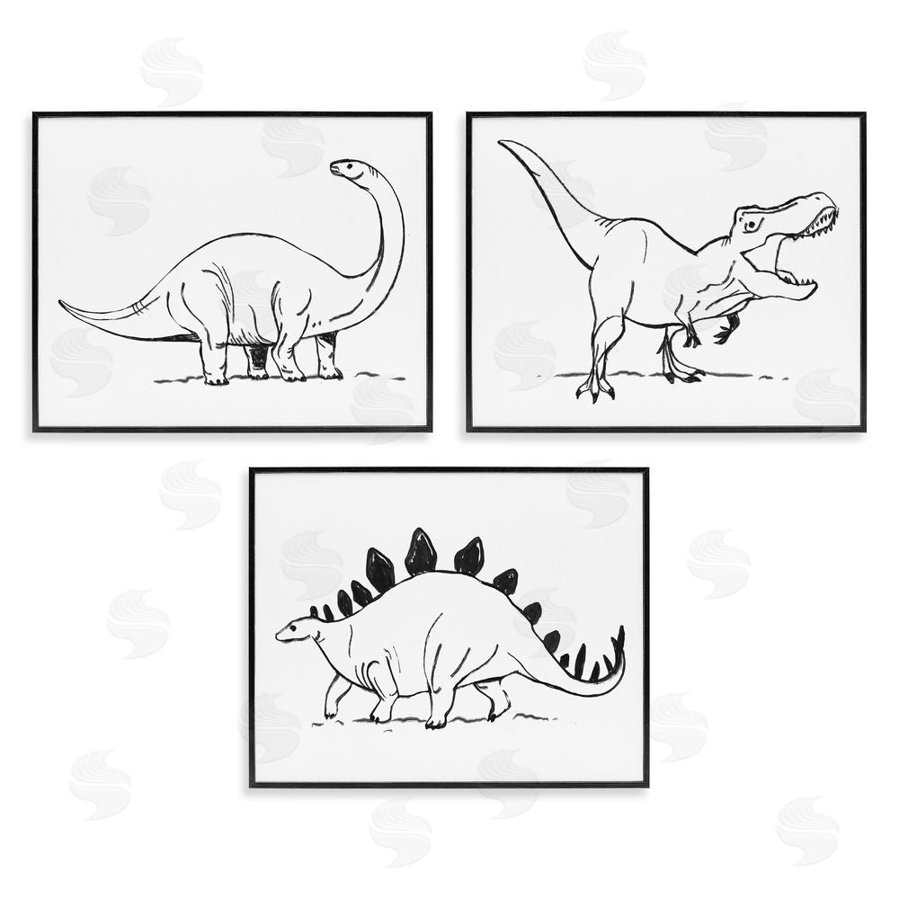 Stupell Studio | Dinosaurs Marching Line Drawing Minimal Black White