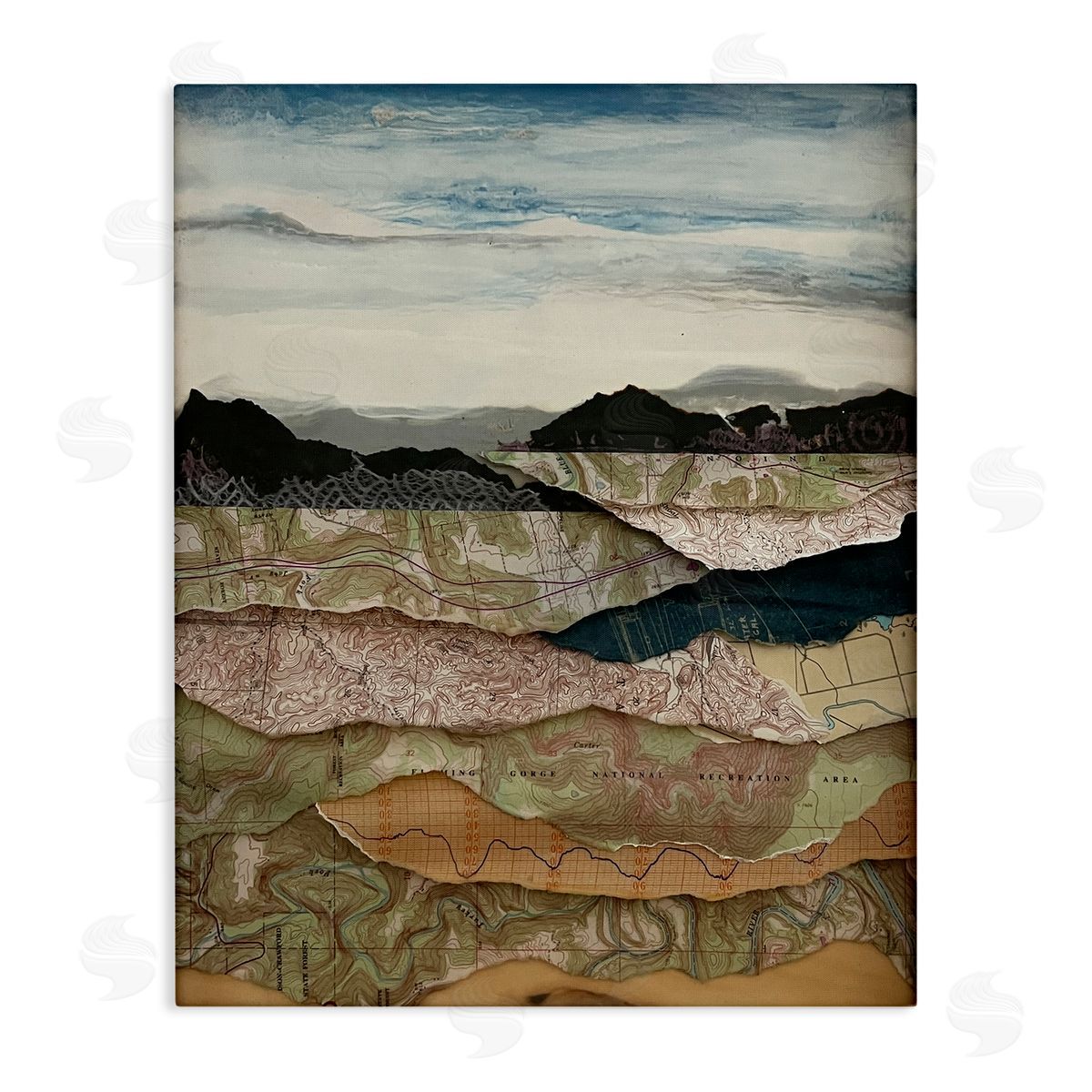 Stacy Gresell | Map Collaged Mountains Landscape