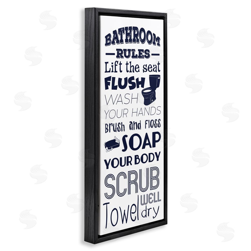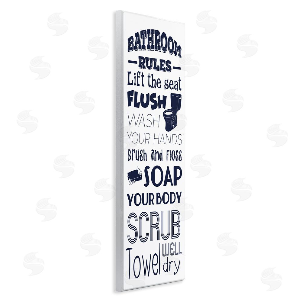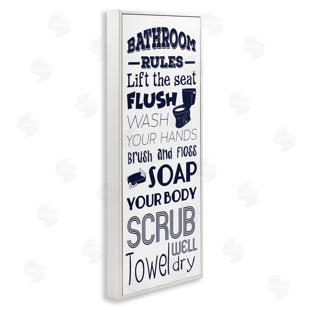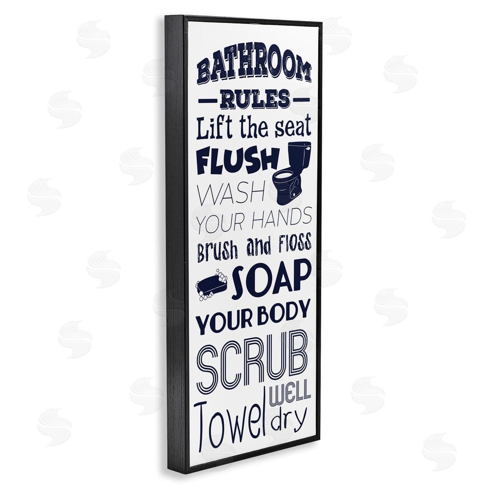 Marcus Prime | Bathroom Rules Sign Navy Blue Toilet Bubbly Soap