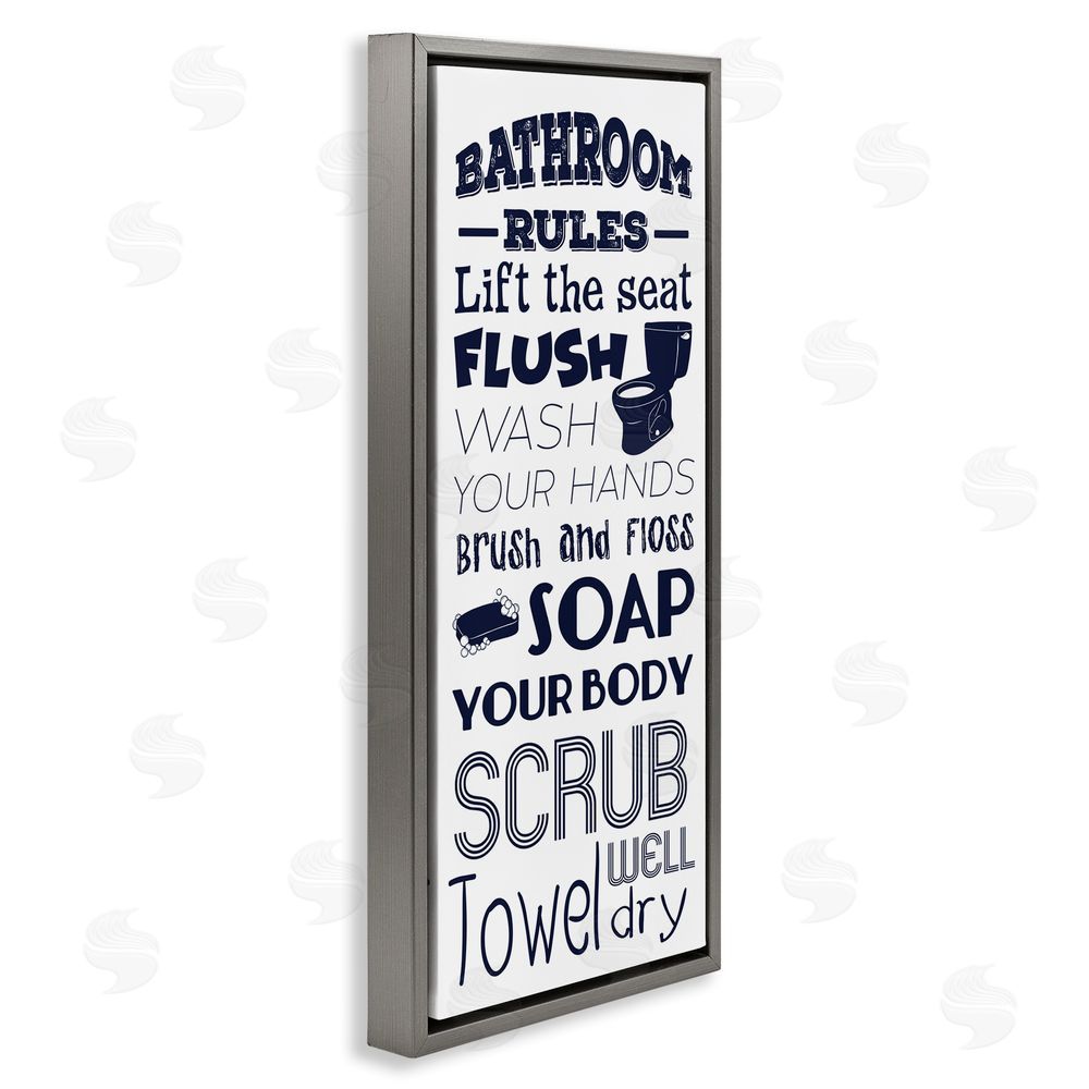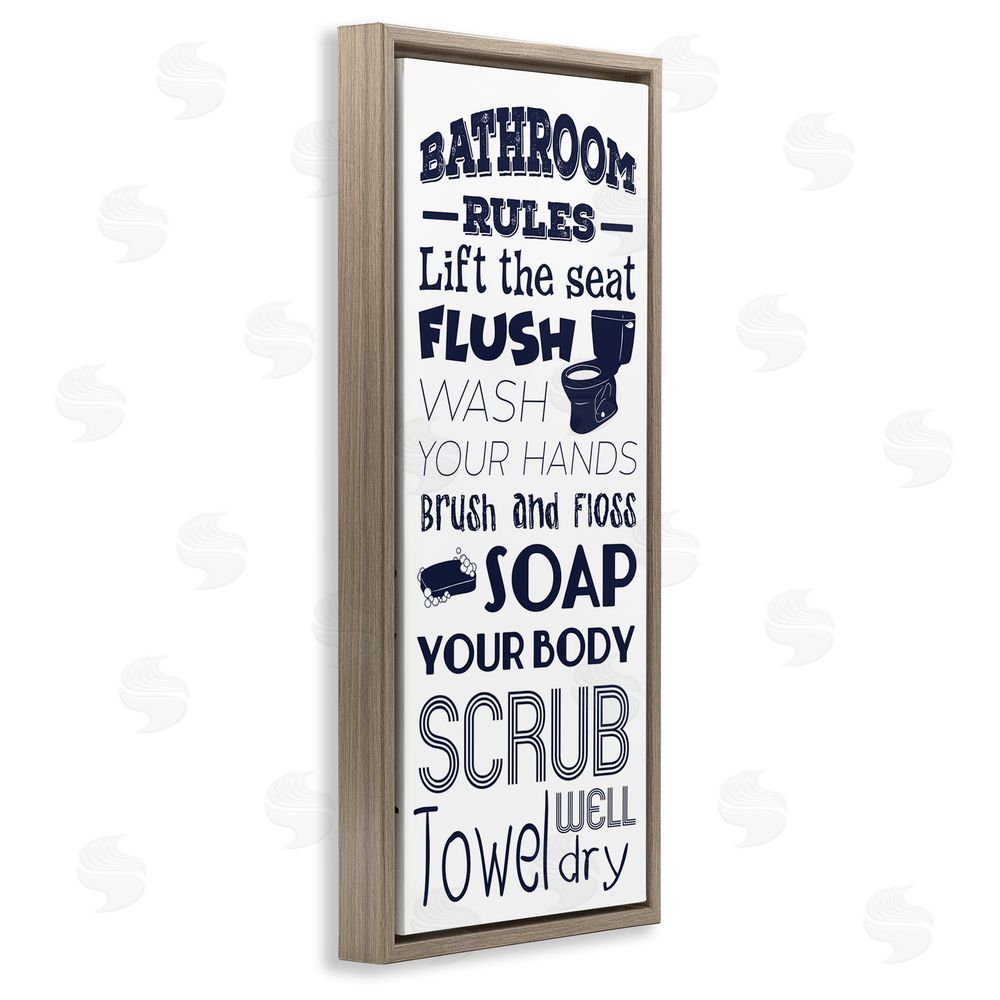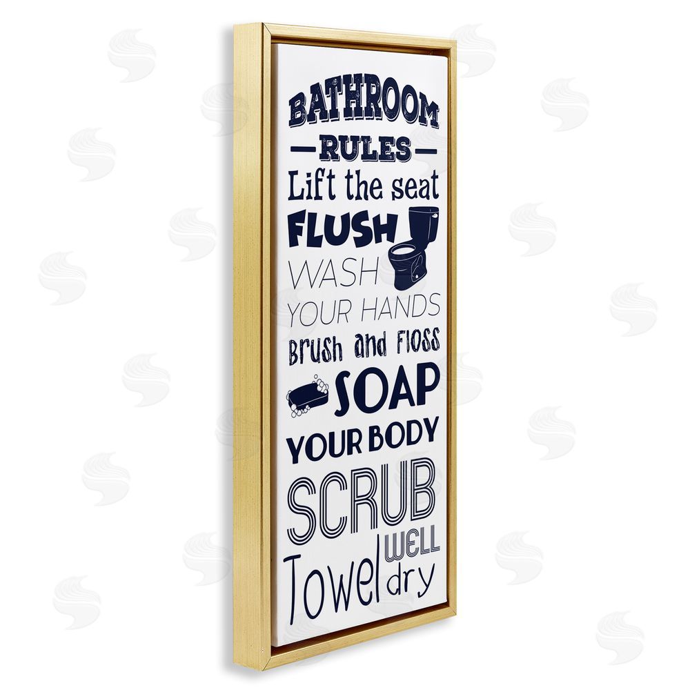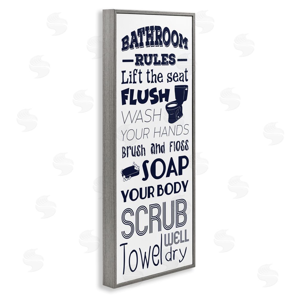 Marcus Prime | Bathroom Rules Sign Navy Blue Toilet Bubbly Soap