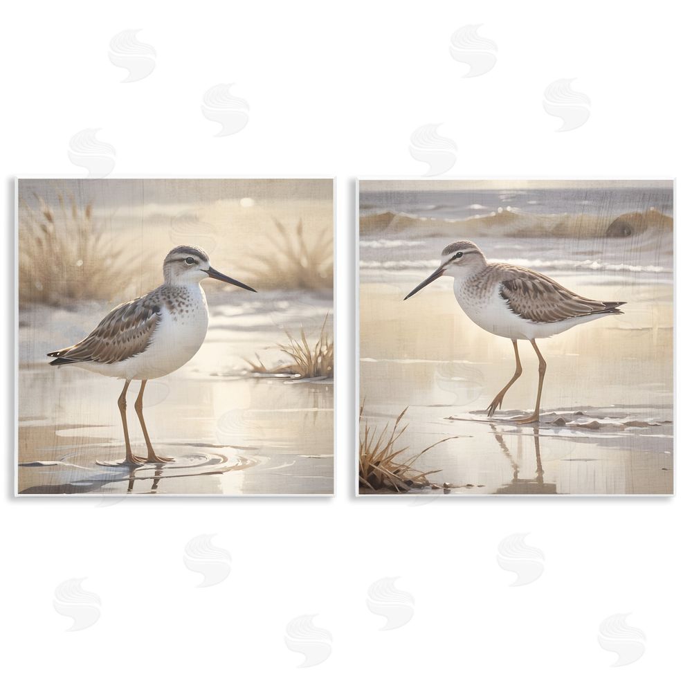 Susan Arnot | Sunlit Sandpipers Wading Shore