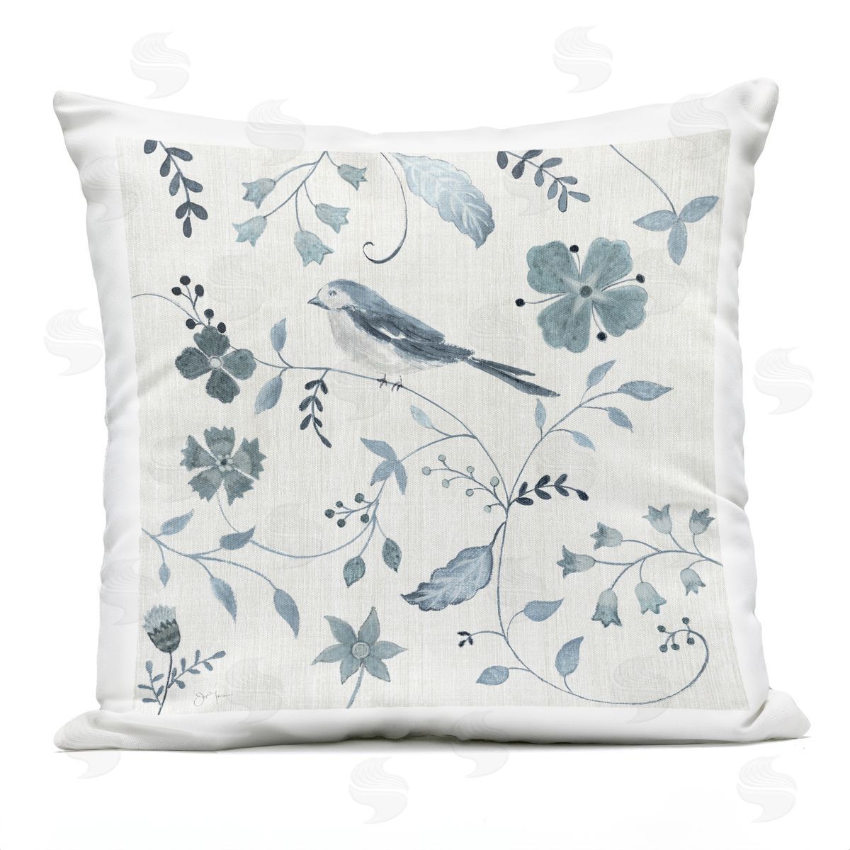 Janet Tava | Bird with Patterned Botanicals Printed Throw Pillow