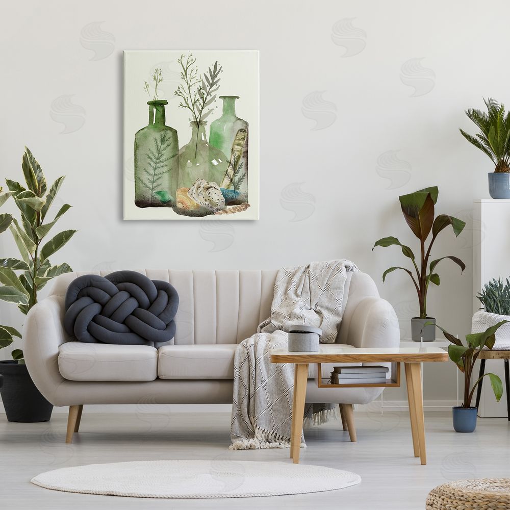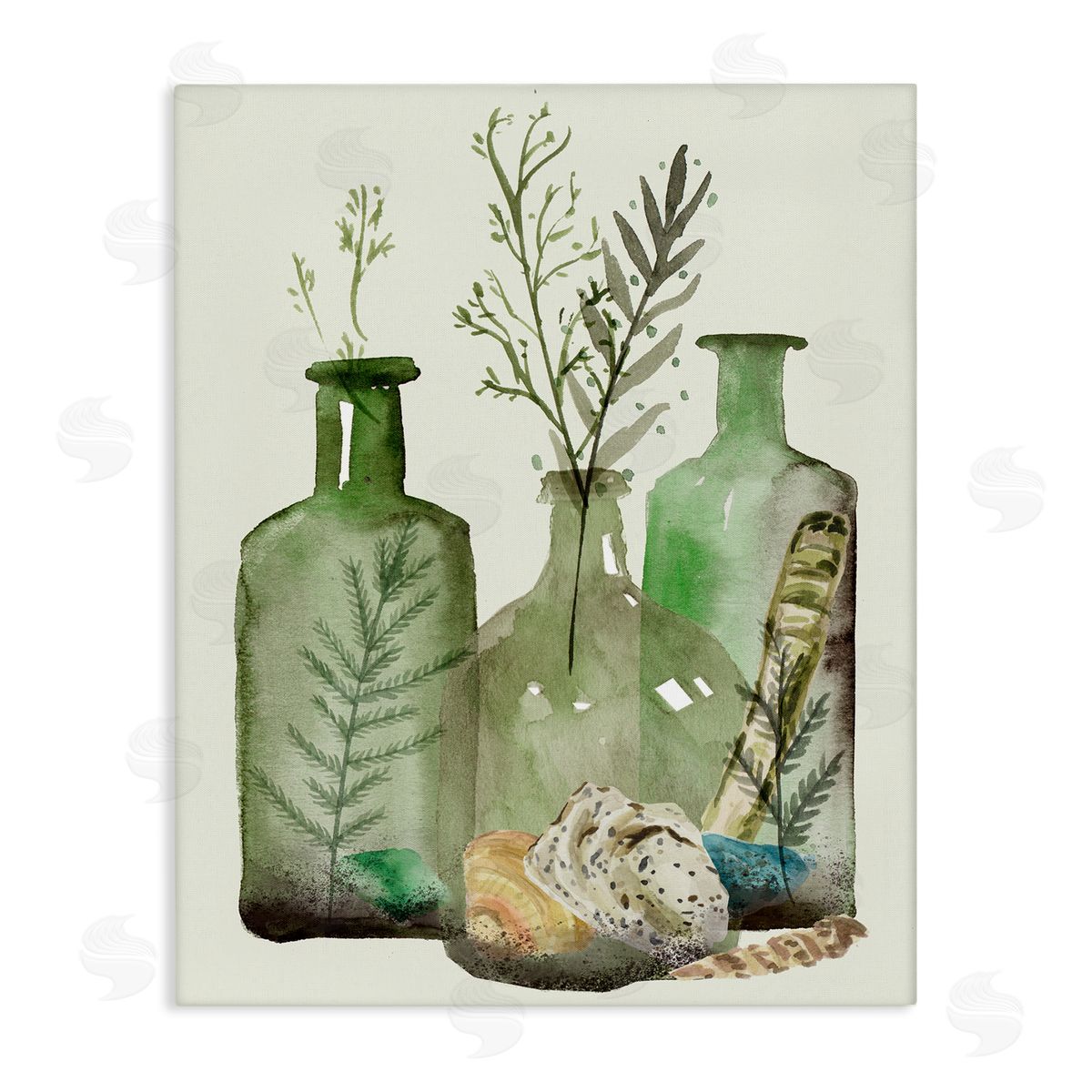 Melissa Wang | Fern Plants Nautical Seashells Green Jug Still Life