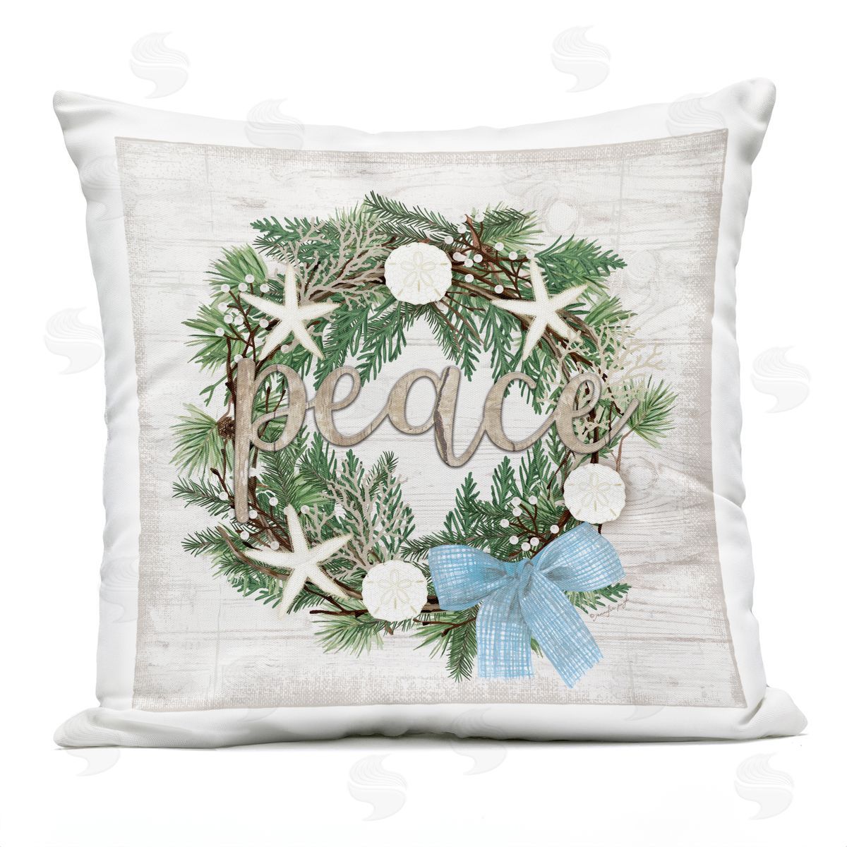 Jennifer Pugh | Coastal Christmas Peace Wreath Printed Throw Pillow