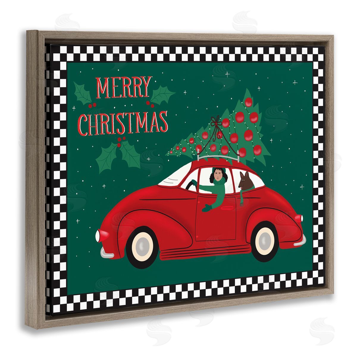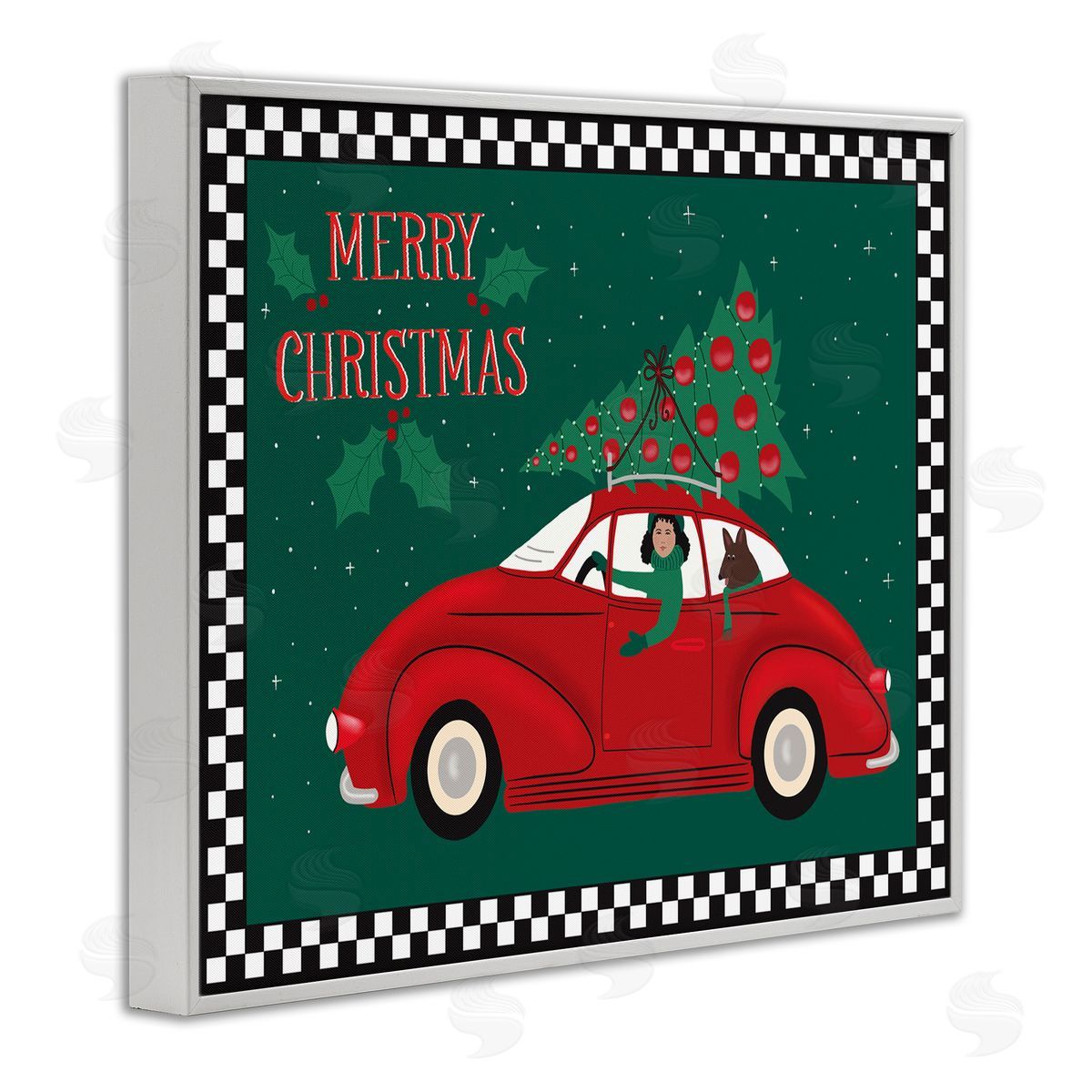 Darlene Seale | Merry Christmas Greeting Woman Sports Car Christmas Tree