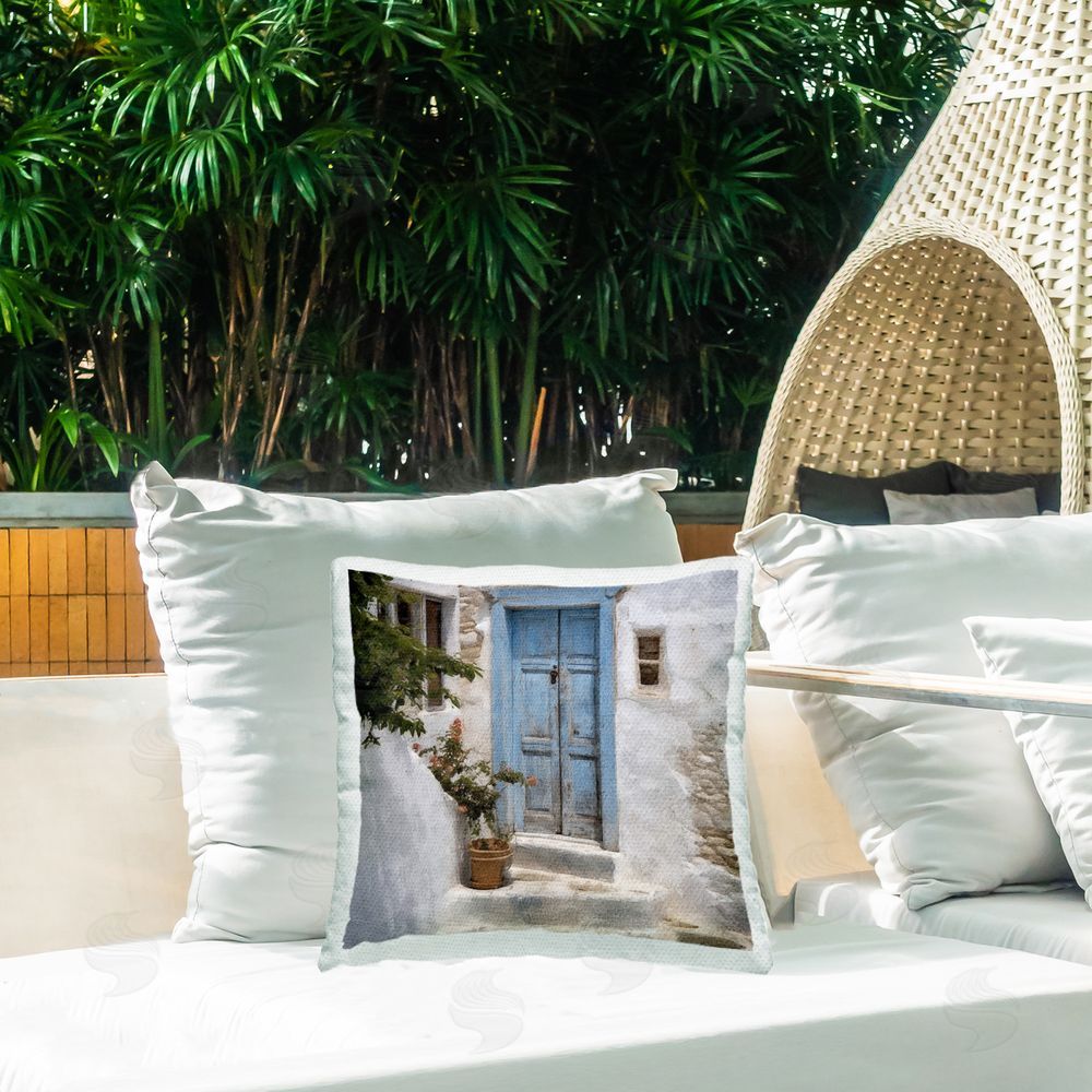 Riley B | Blue Greek Door Printed Throw Pillow