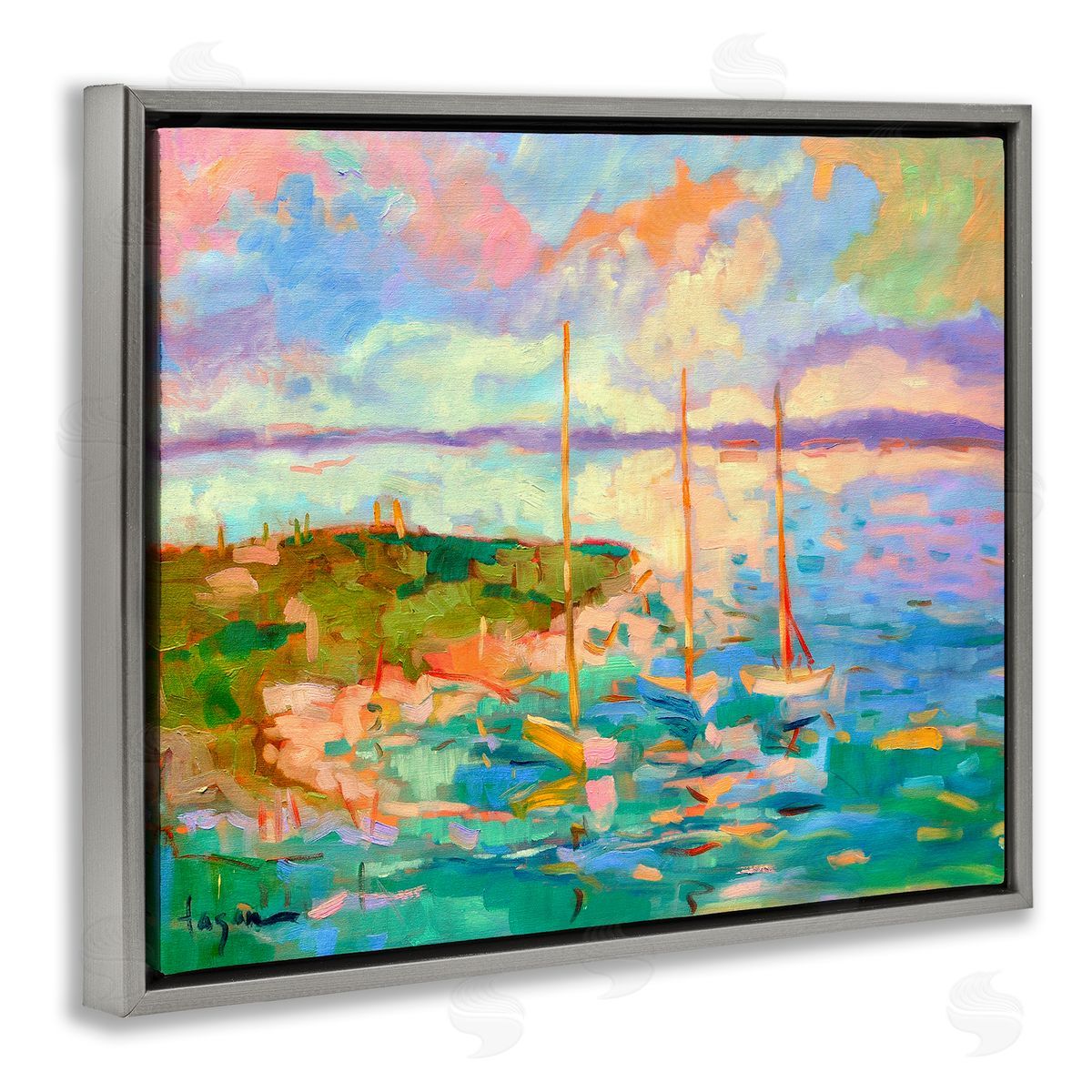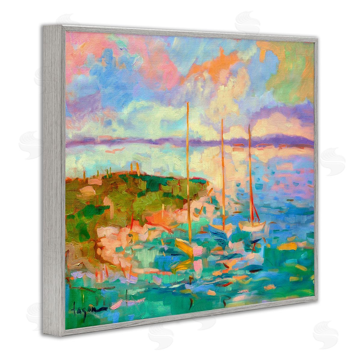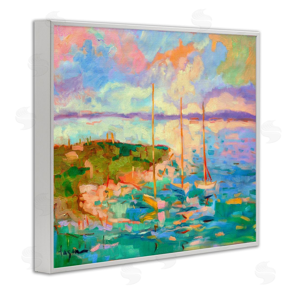 Dorothy Fagan | Vivid Abstract Coast with Boats