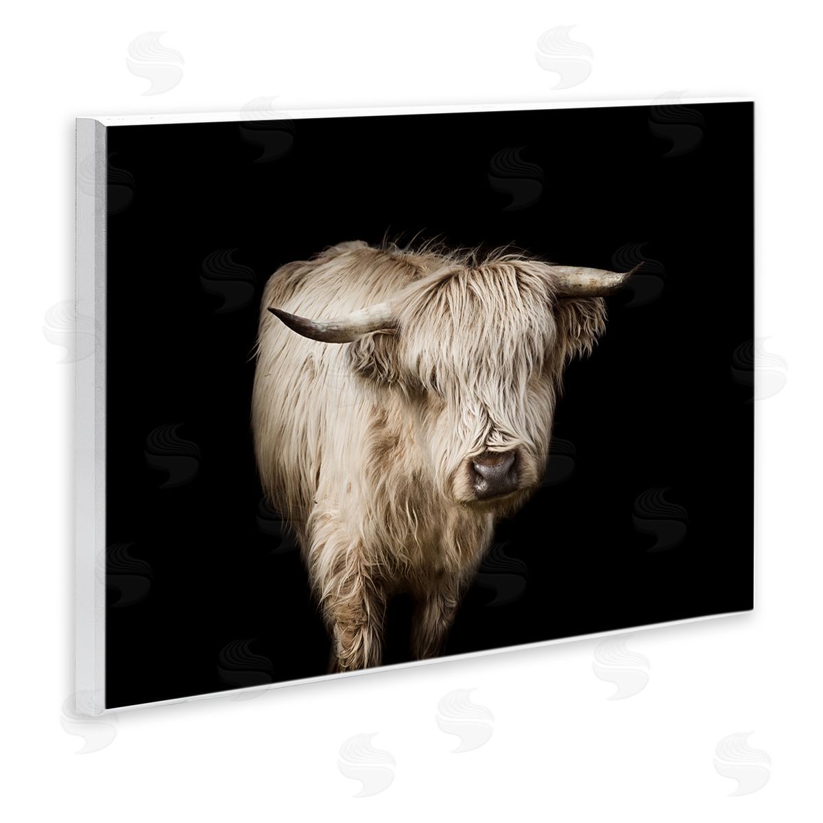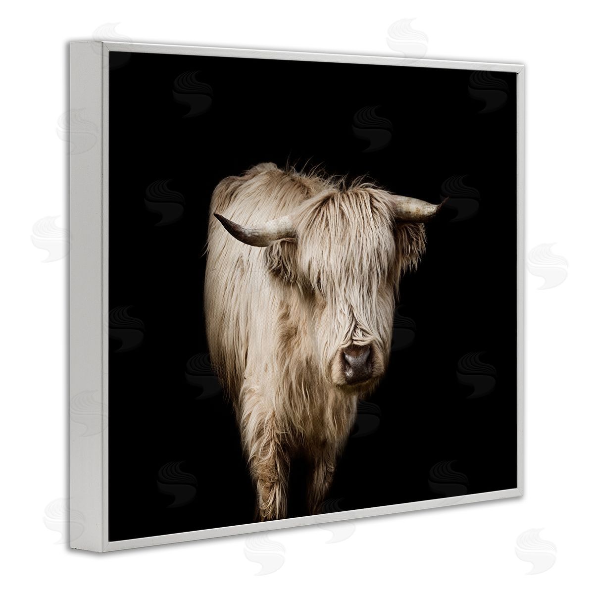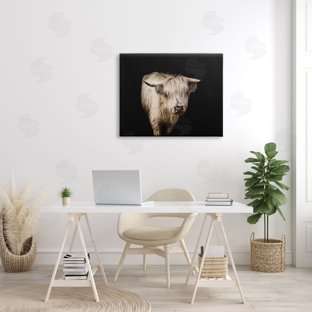 Marika Moffit | Solemn Cattle Portrait Modern Farm Animal over Black