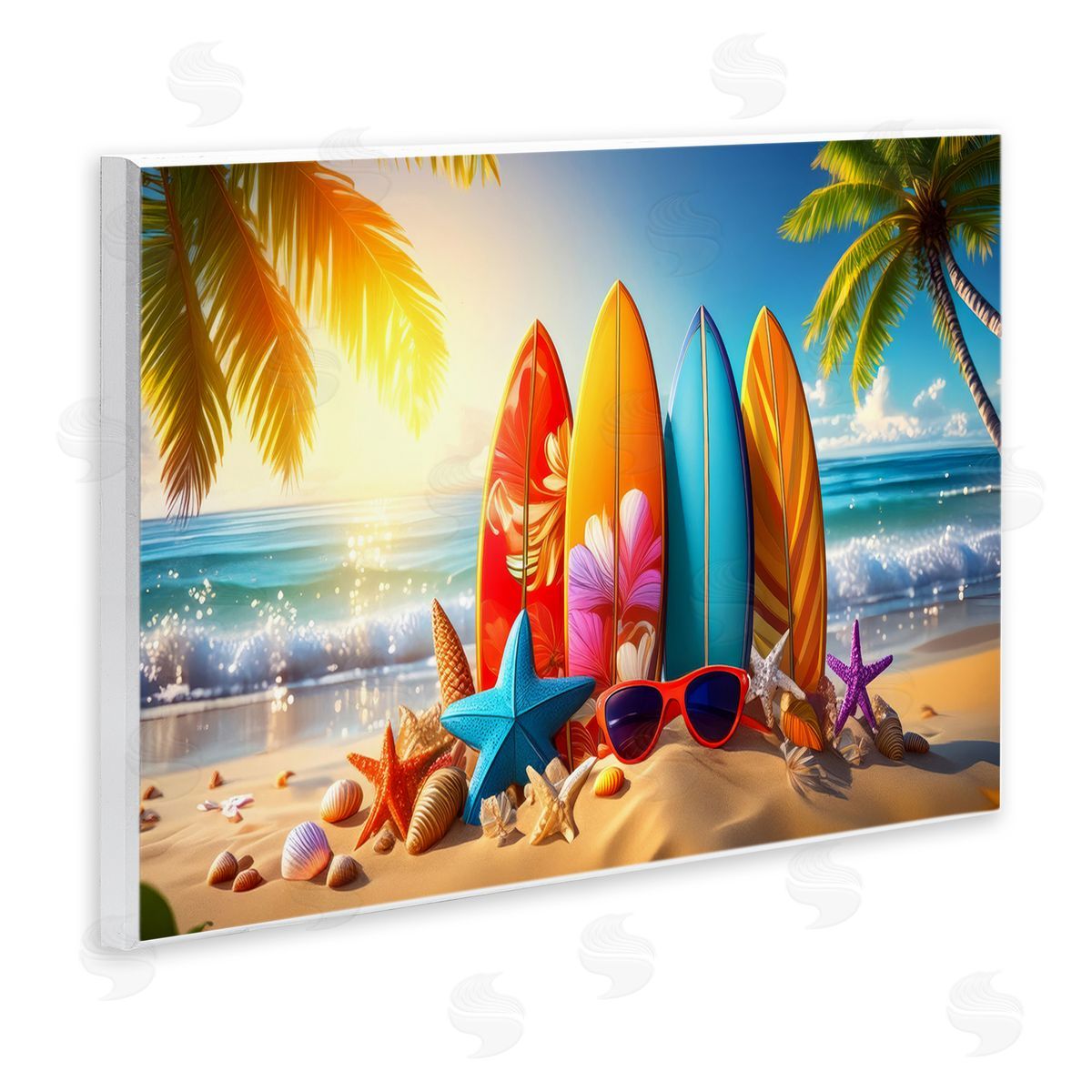We create our stretched canvas to the highest standards. Using only the highest quality inks and canvas on Mimaki printers, we hand-cut and stretch each piece over a 1.5-inch thick wooden frame for hanging. As a result, the art comes ready to hang on the sturdy ledge with no installation required.