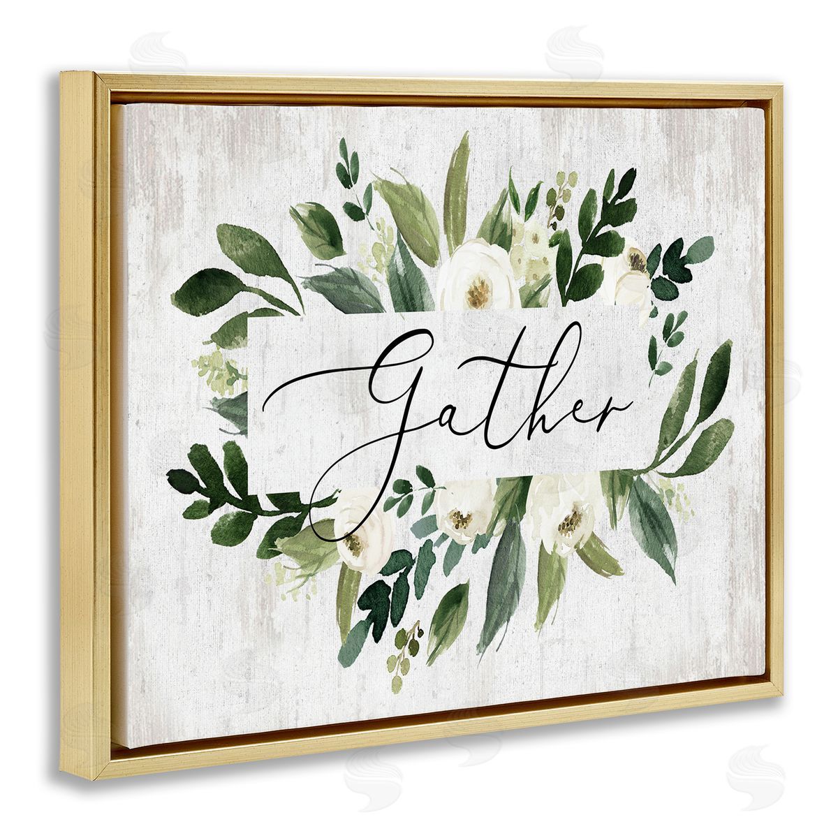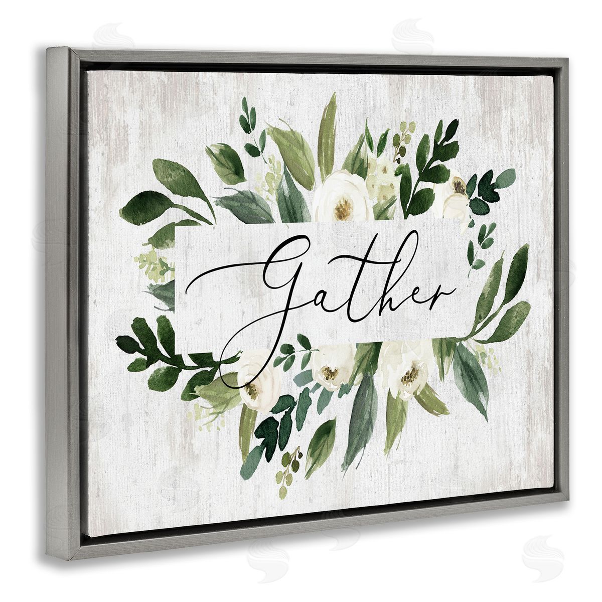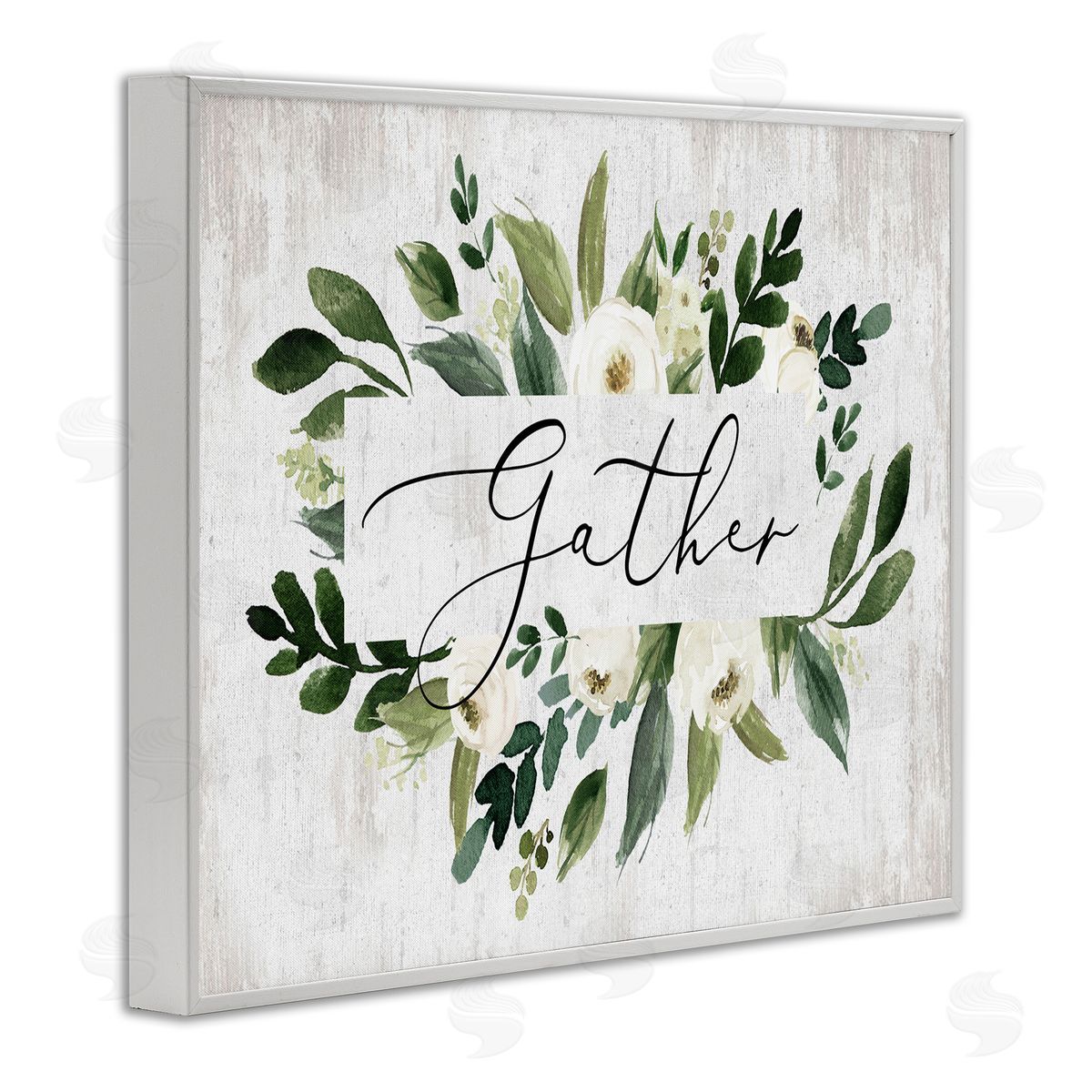 Lettered and Lined | Gather Text White Flower Green Botanicals Distressed Pattern