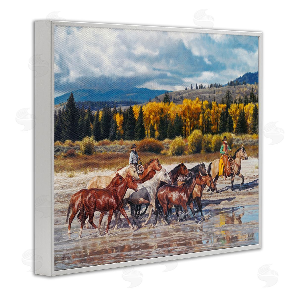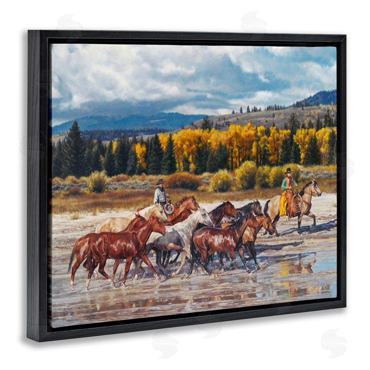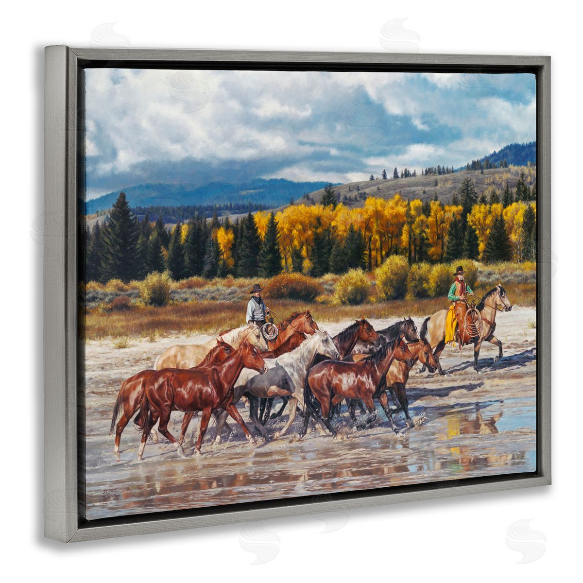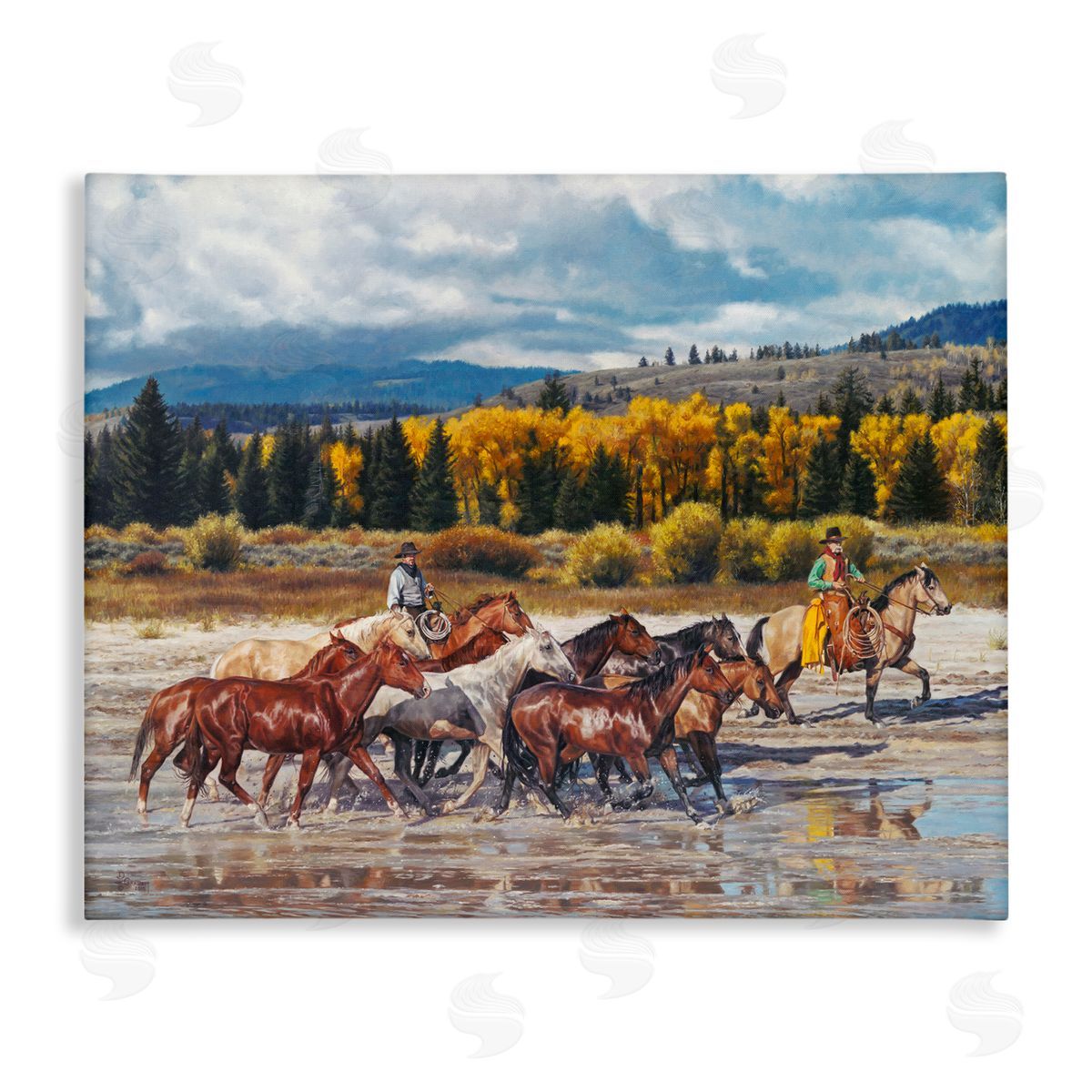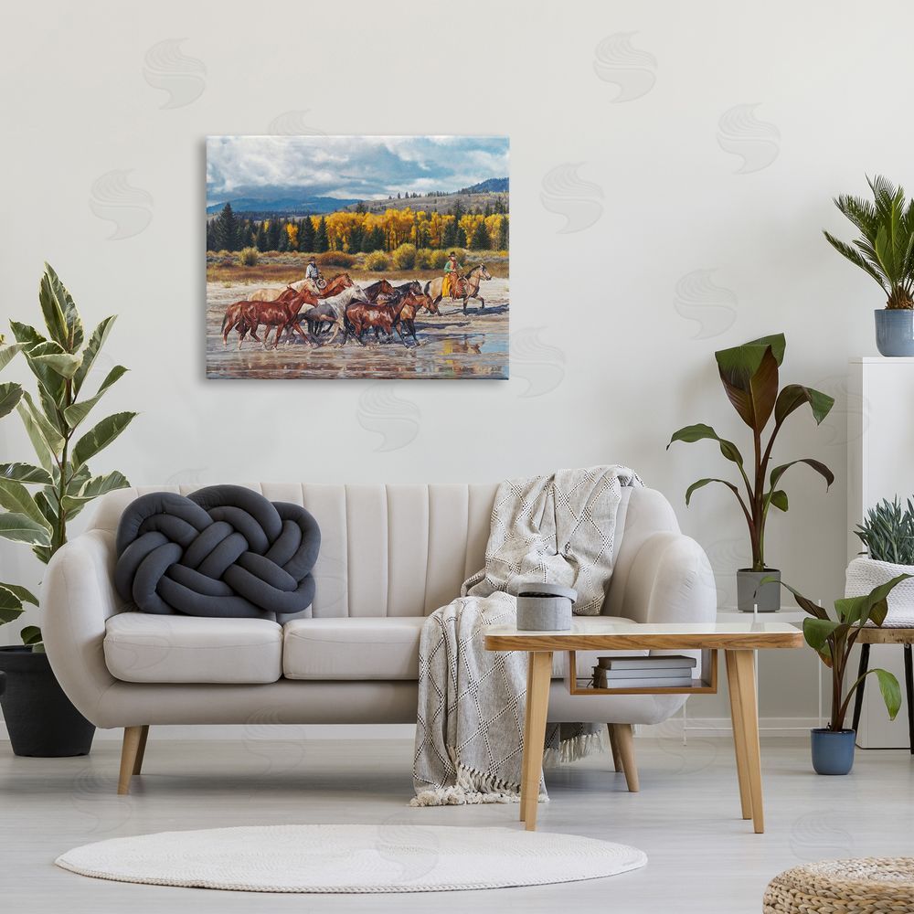 David Graham | Cowboys Galloping River Landscape