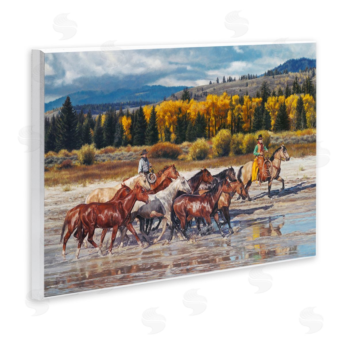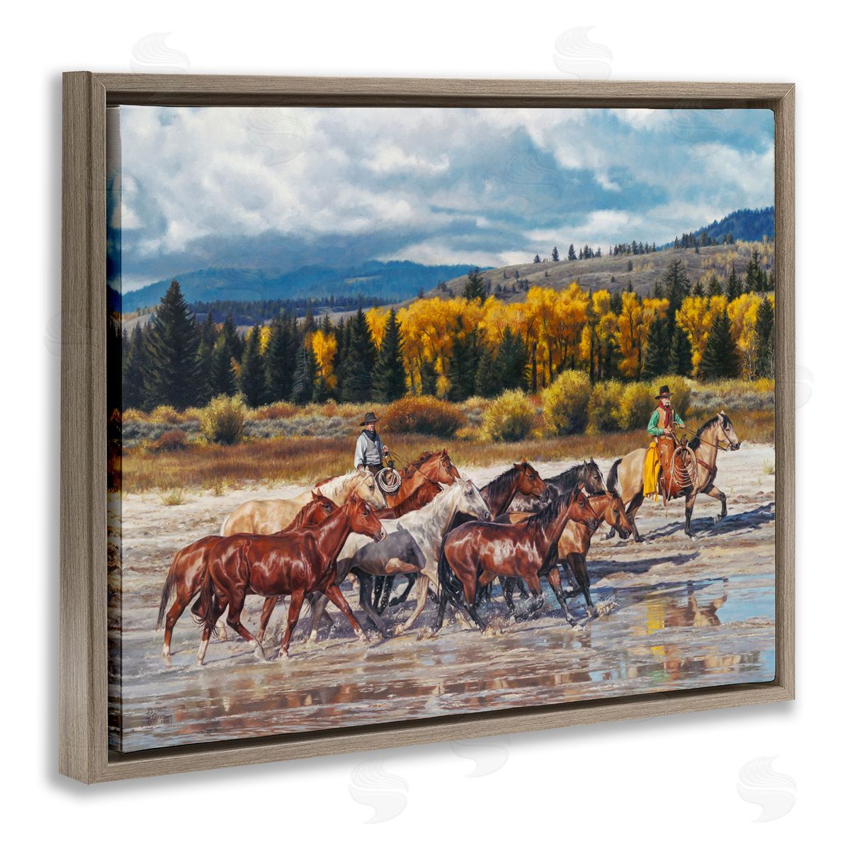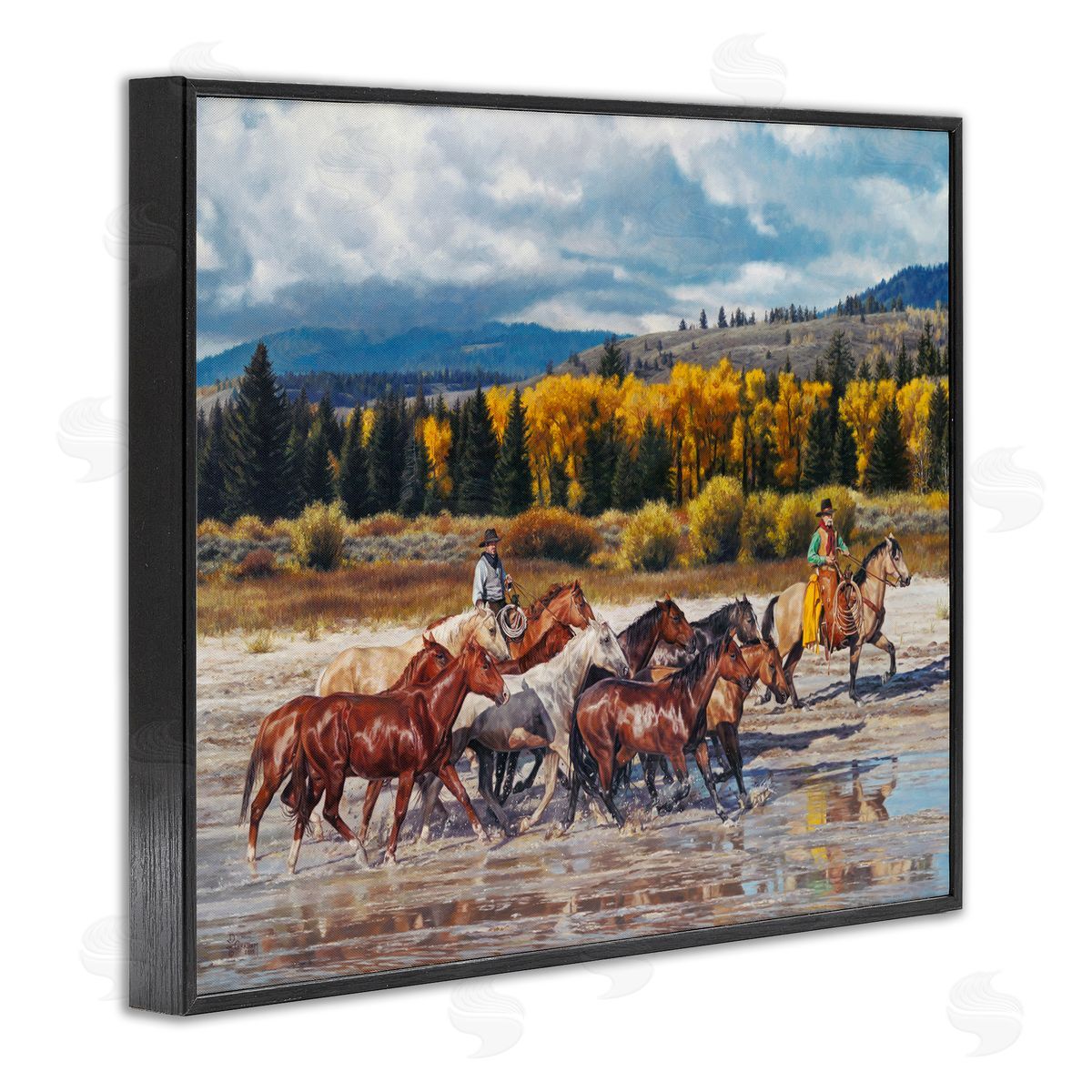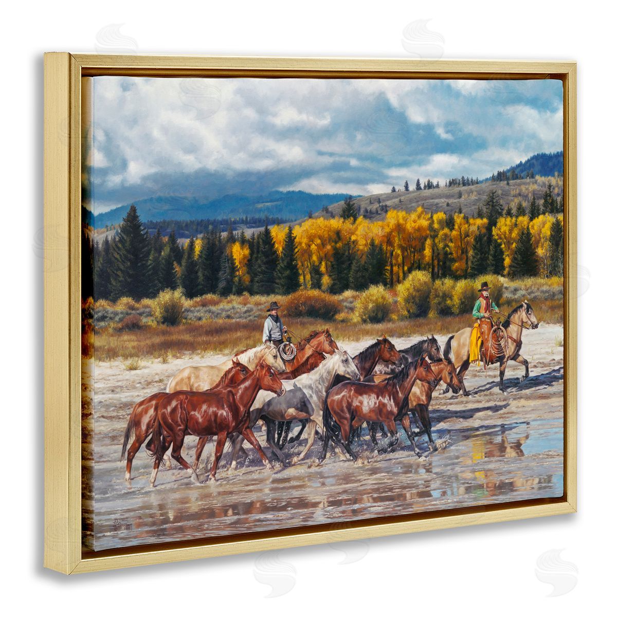 David Graham | Cowboys Galloping River Landscape