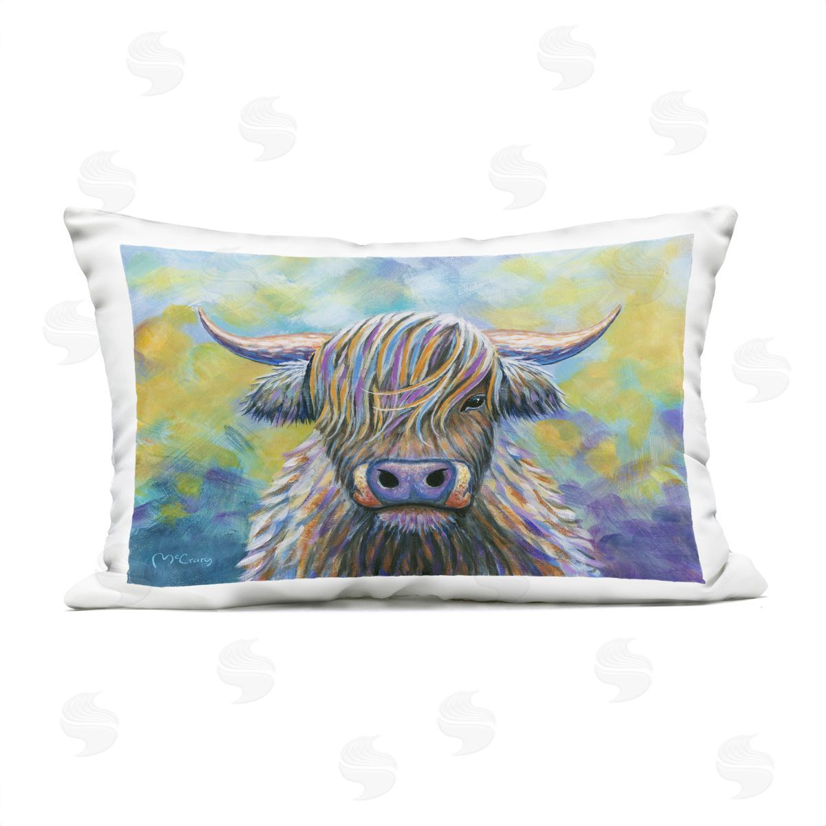 Mike McClery | Highland Cow with Vibrant Hair Printed Throw Pillow