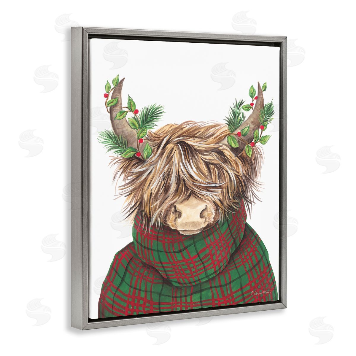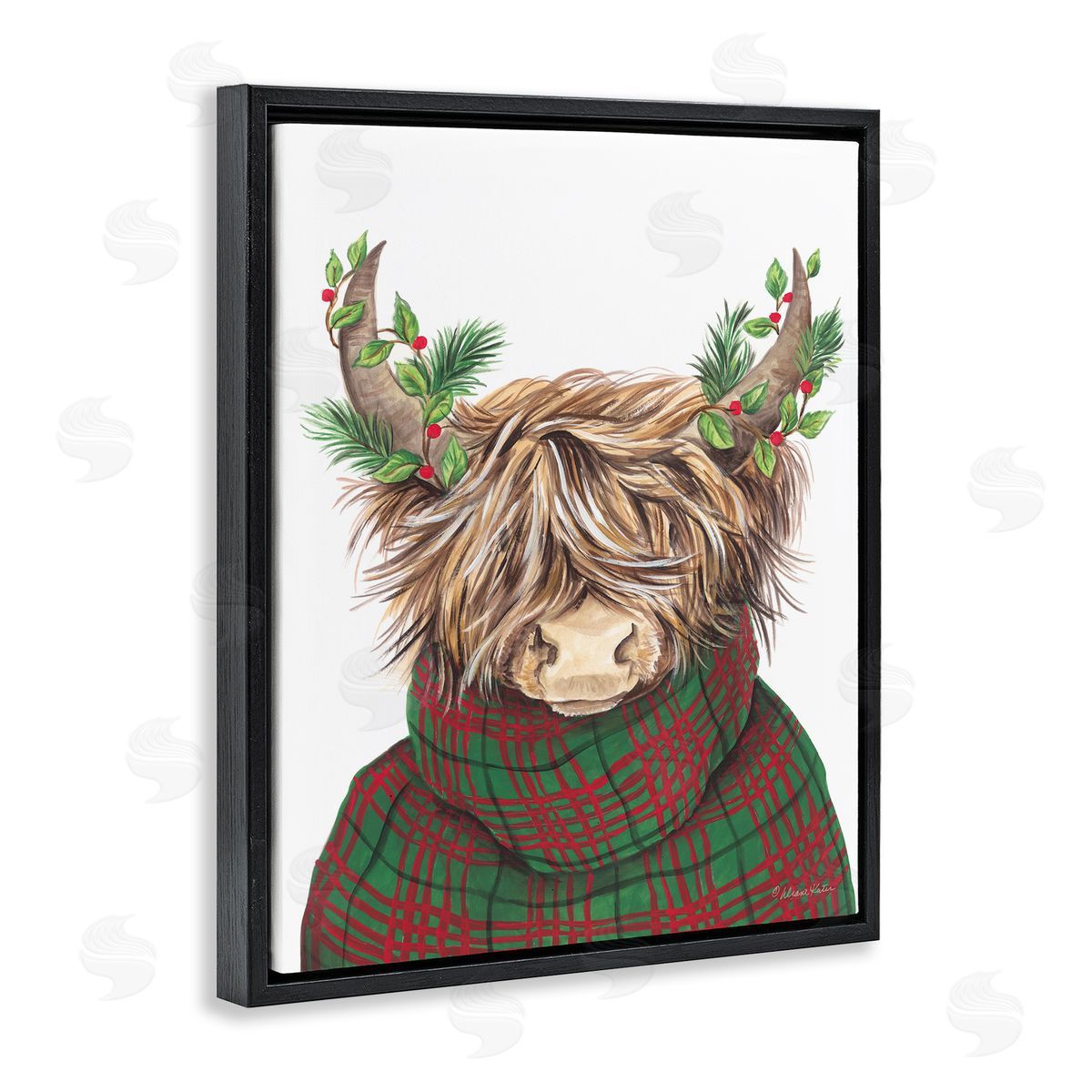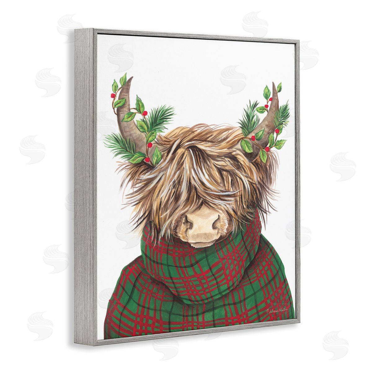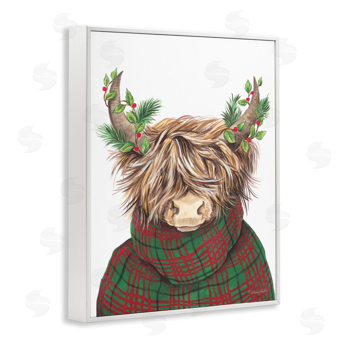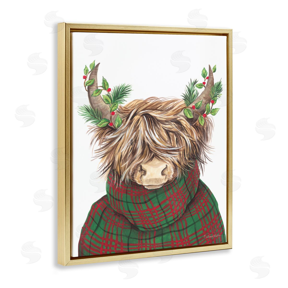 Diane Kater | Christmas Plaid Sweater Highland Cattle Festive Long Horns