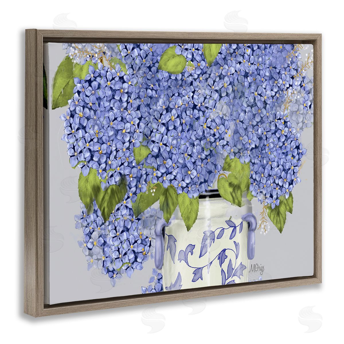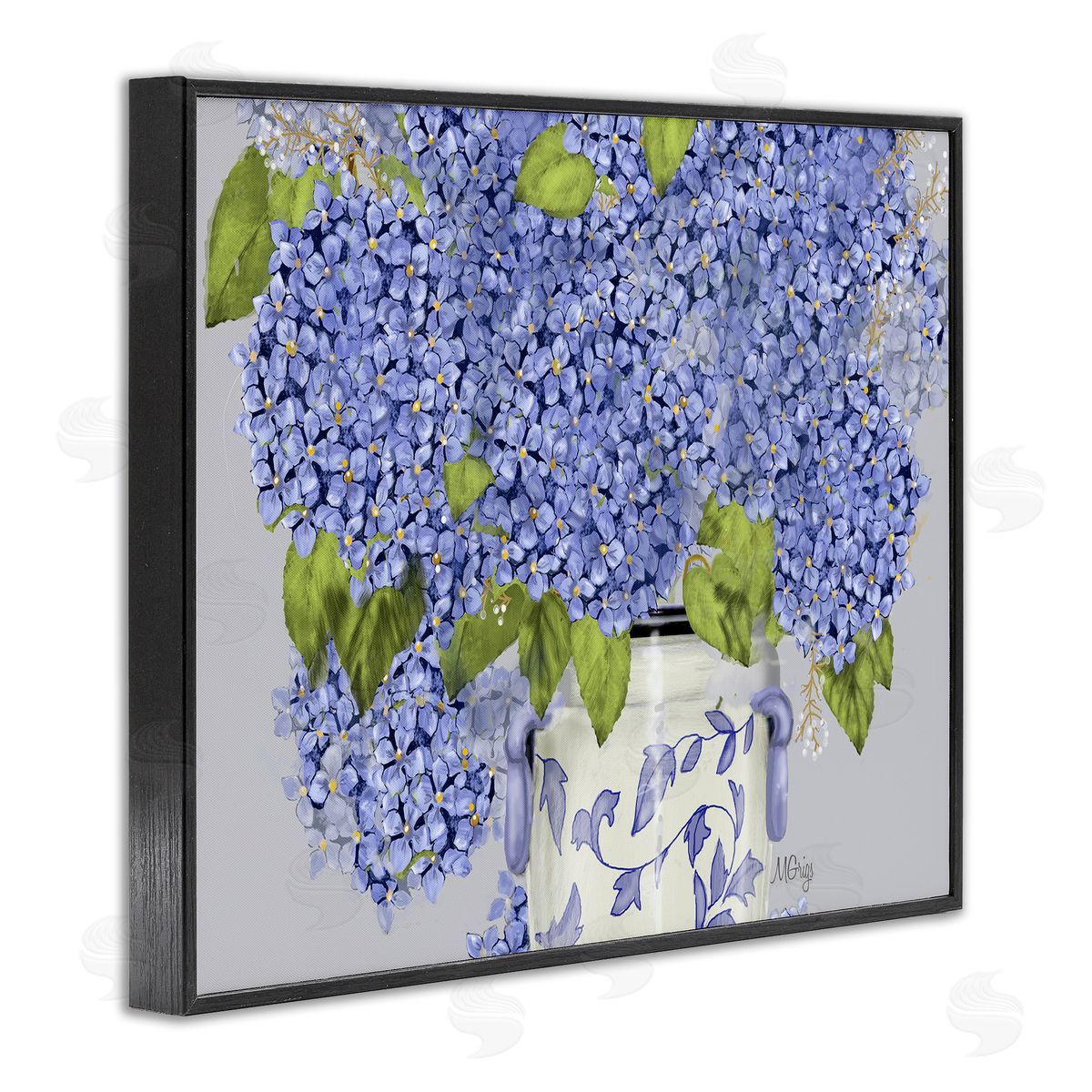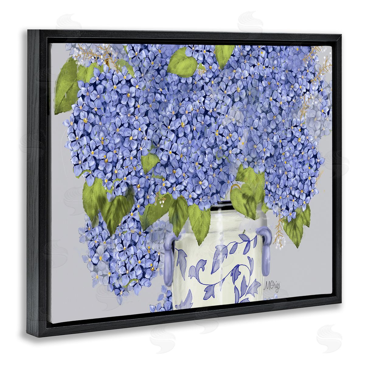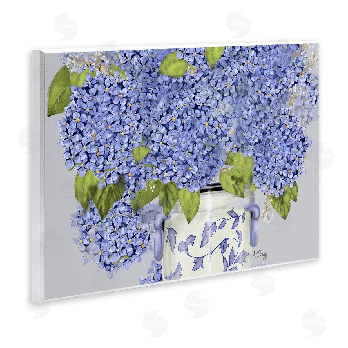 Maureen Griggs | Blue Hydrangea Bunches Ornate Patterned Vase Still Life