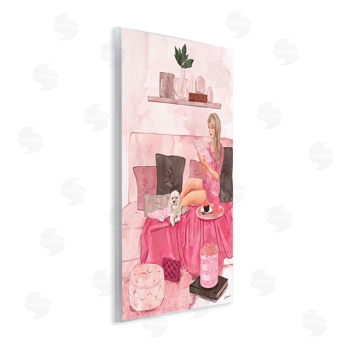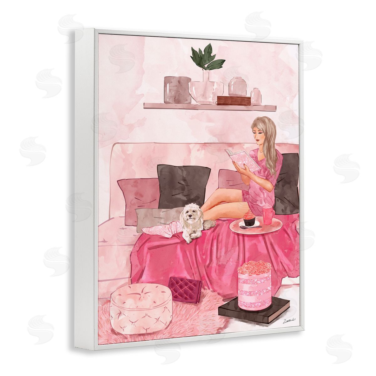 Ziwei Li | Fashionista Reading with Dog Pink Room Interior