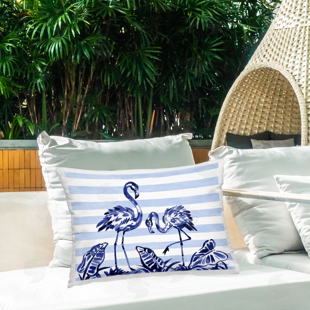 Paul Brent | Indigo Brushstroke Flamingos Printed Throw Pillow