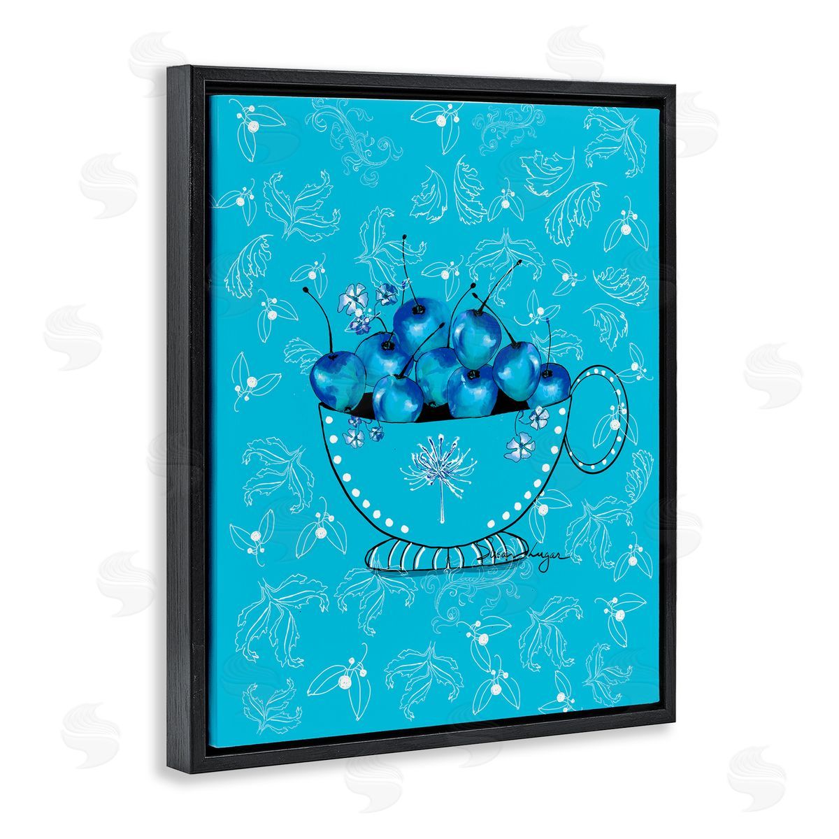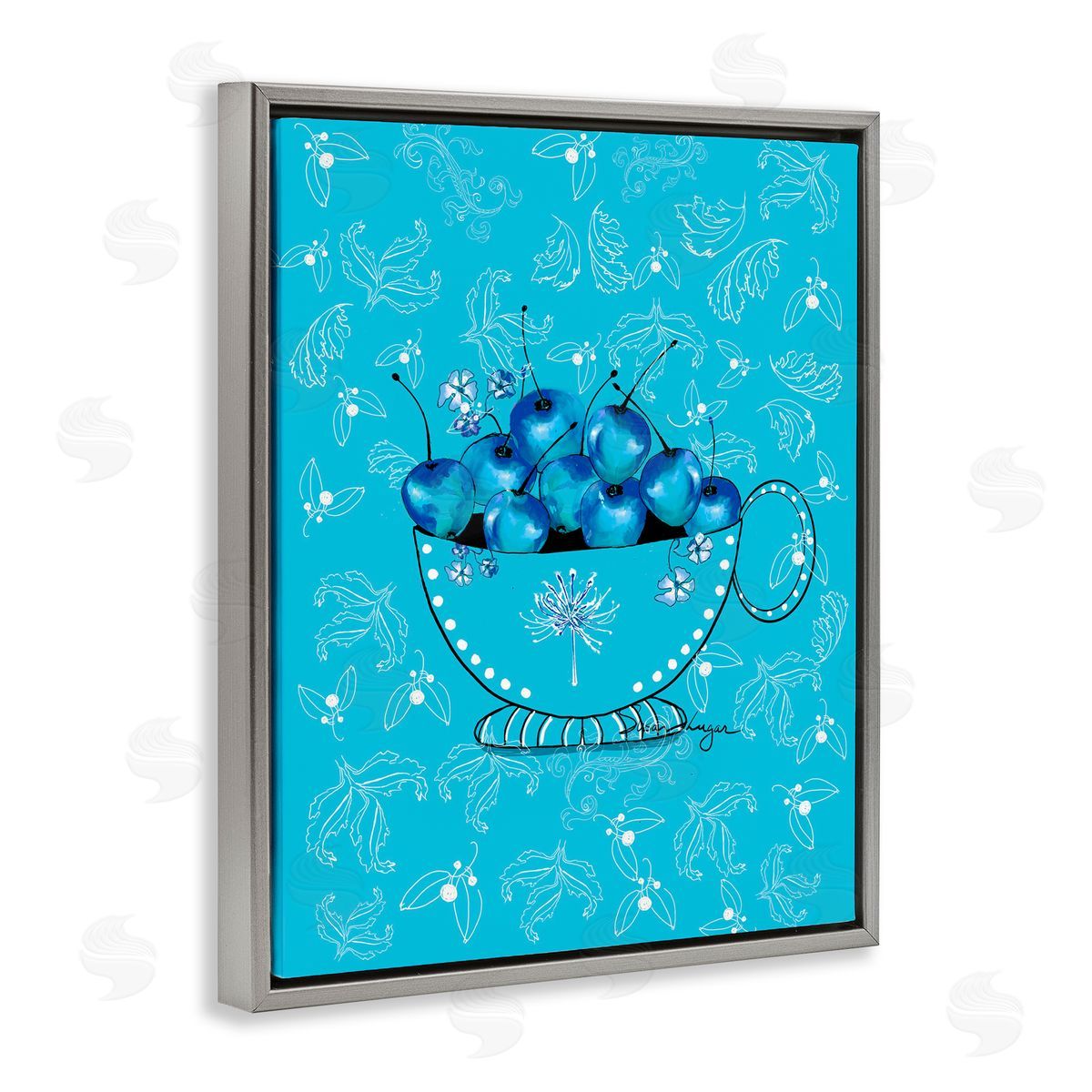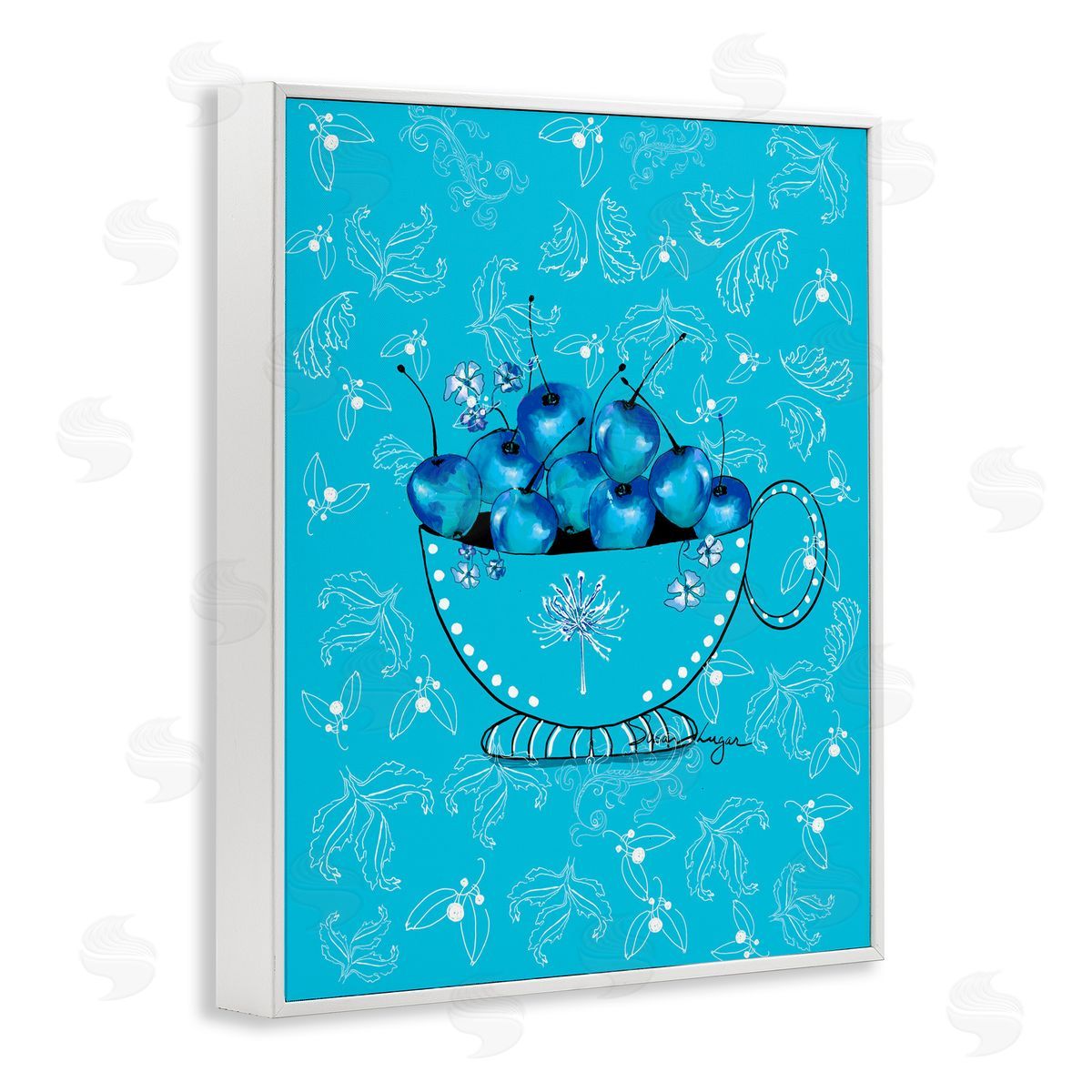 Susan Lugar | Blue Cherries Teacup on Florals