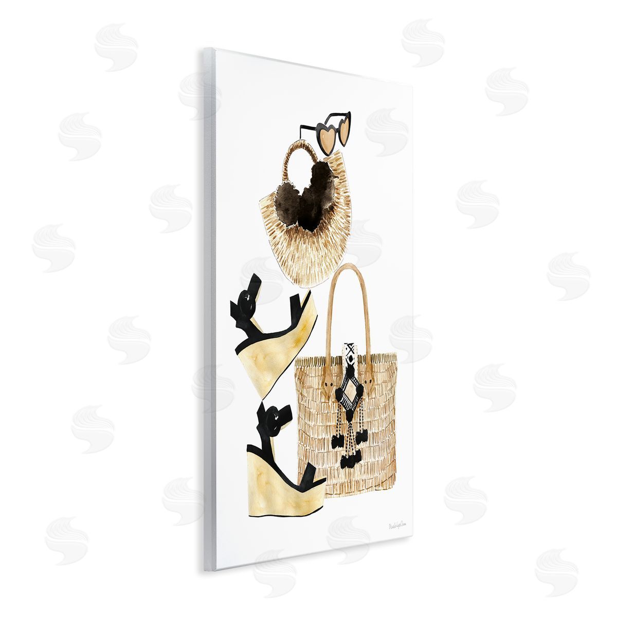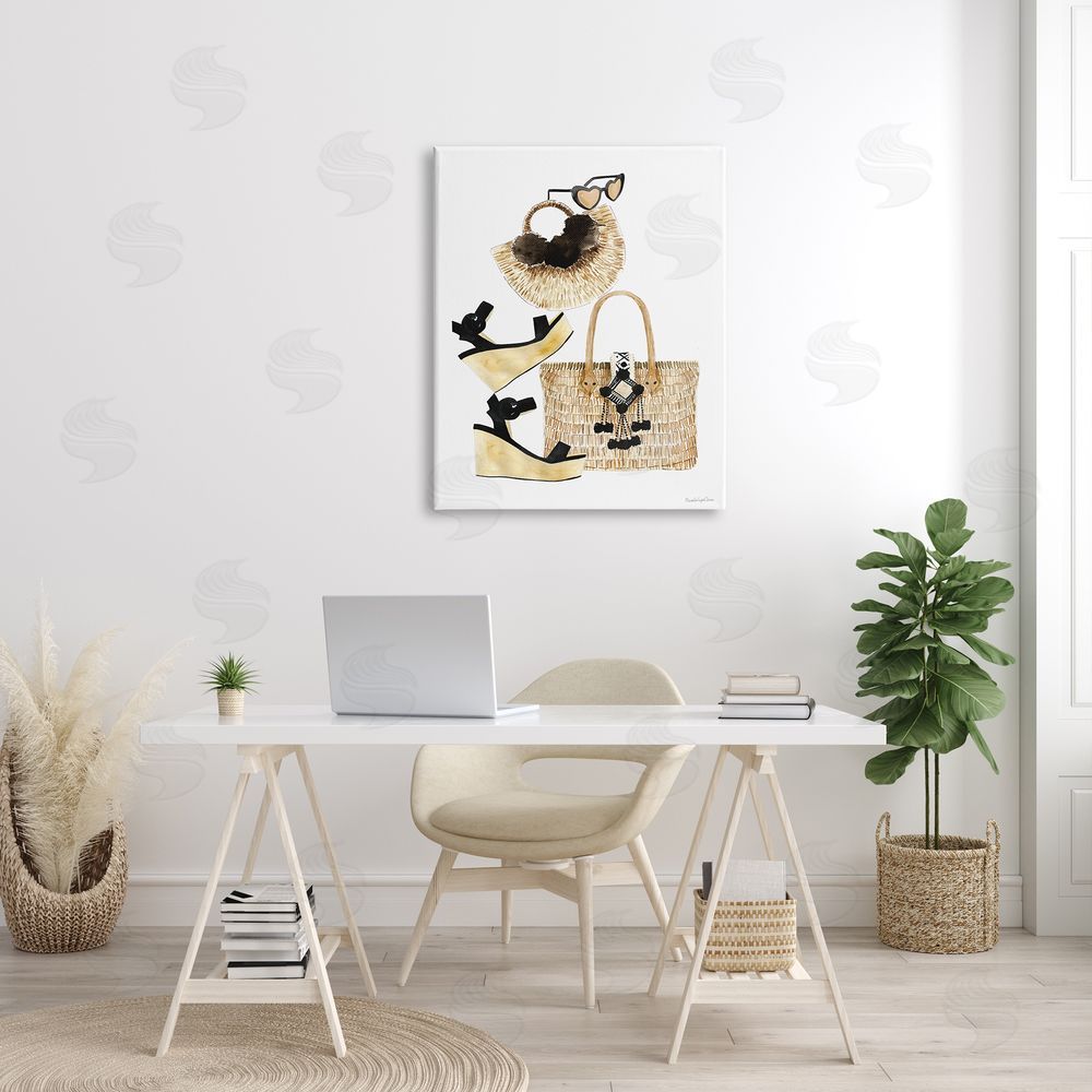 Mercedes Lopez Charro | Fashion Accessory Arrangement Wicker Bags and Wedges