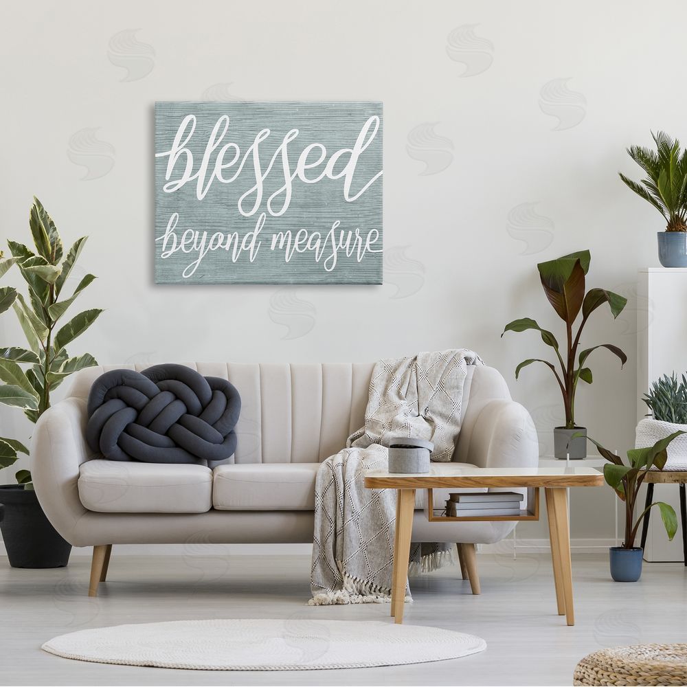 Stupell Studio | Blessed Beyond Measure Motivational Phrase Rustic Blue Pattern