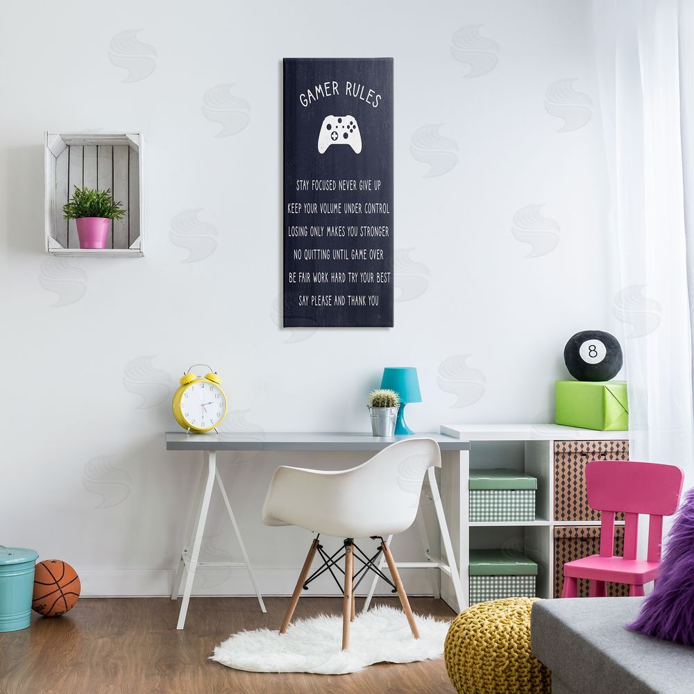 Stupell Studio | Blue Gamer Rules Motivational Phrases for Children