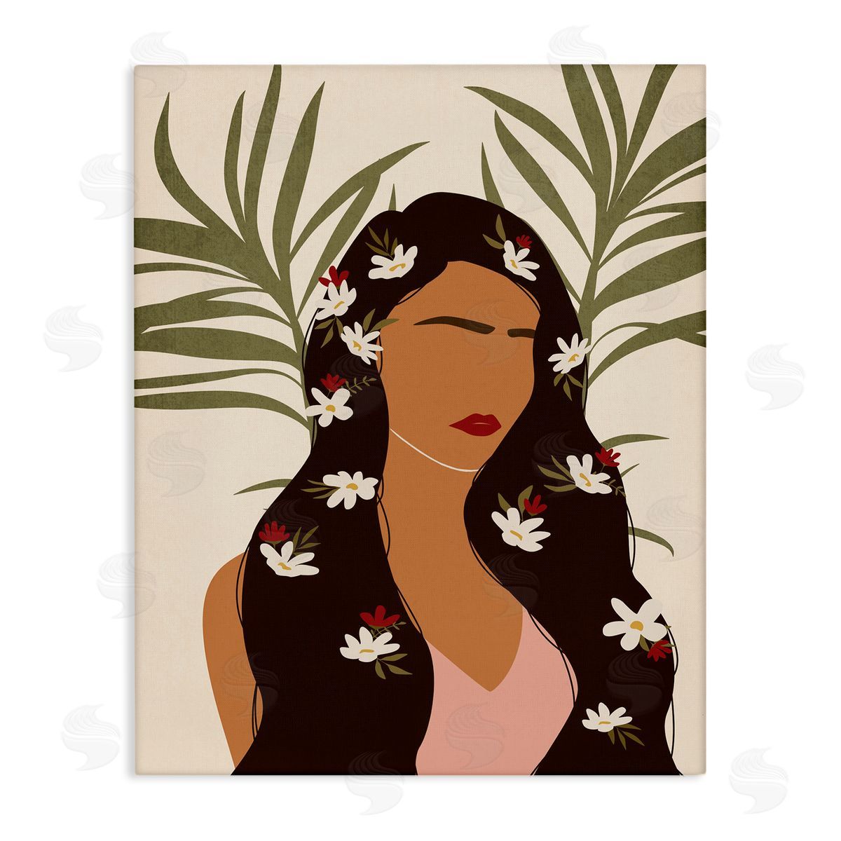 JJ Design House LLC | Female With Tropical Florals in Hair Palm Leaves