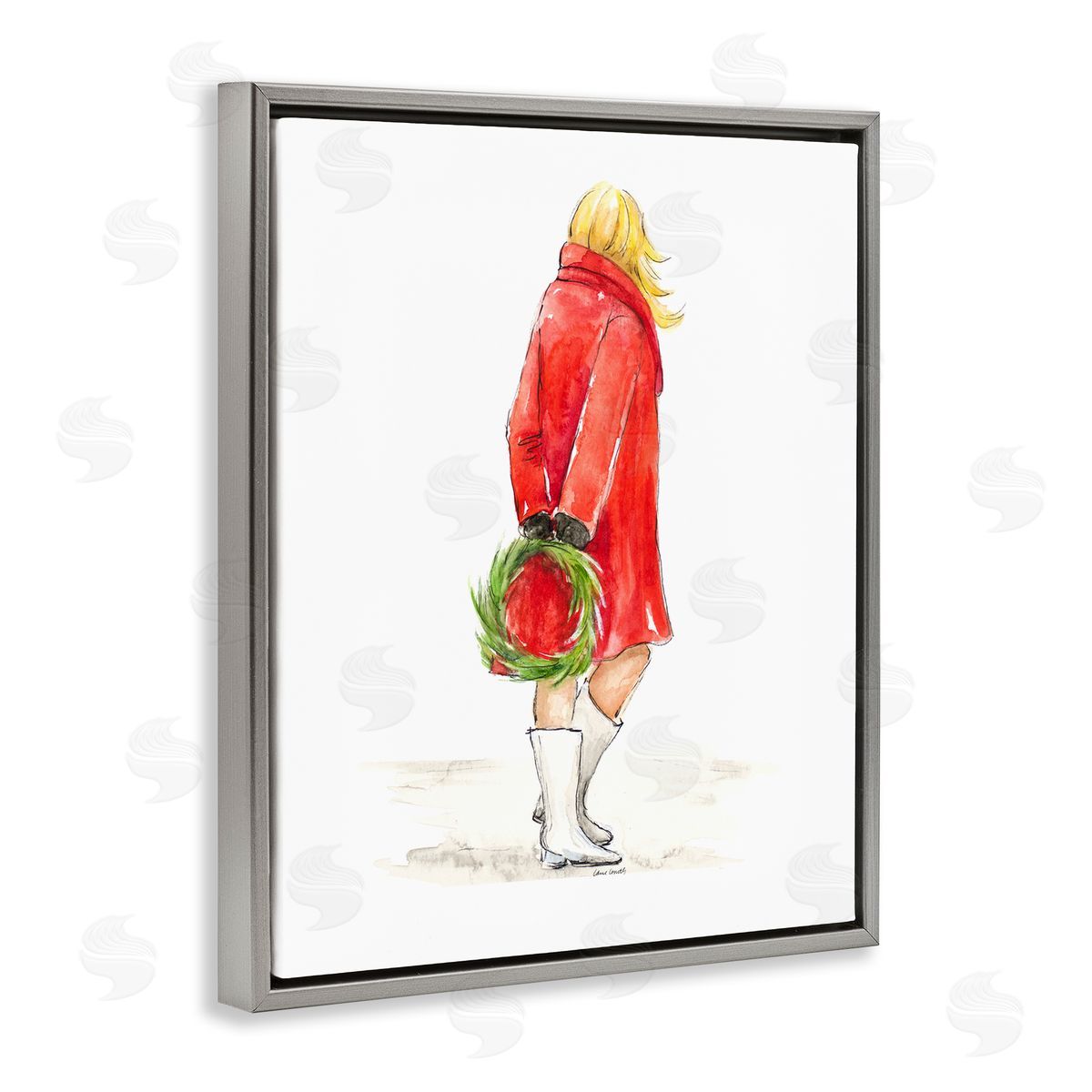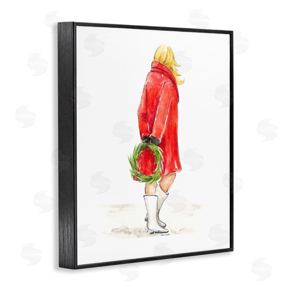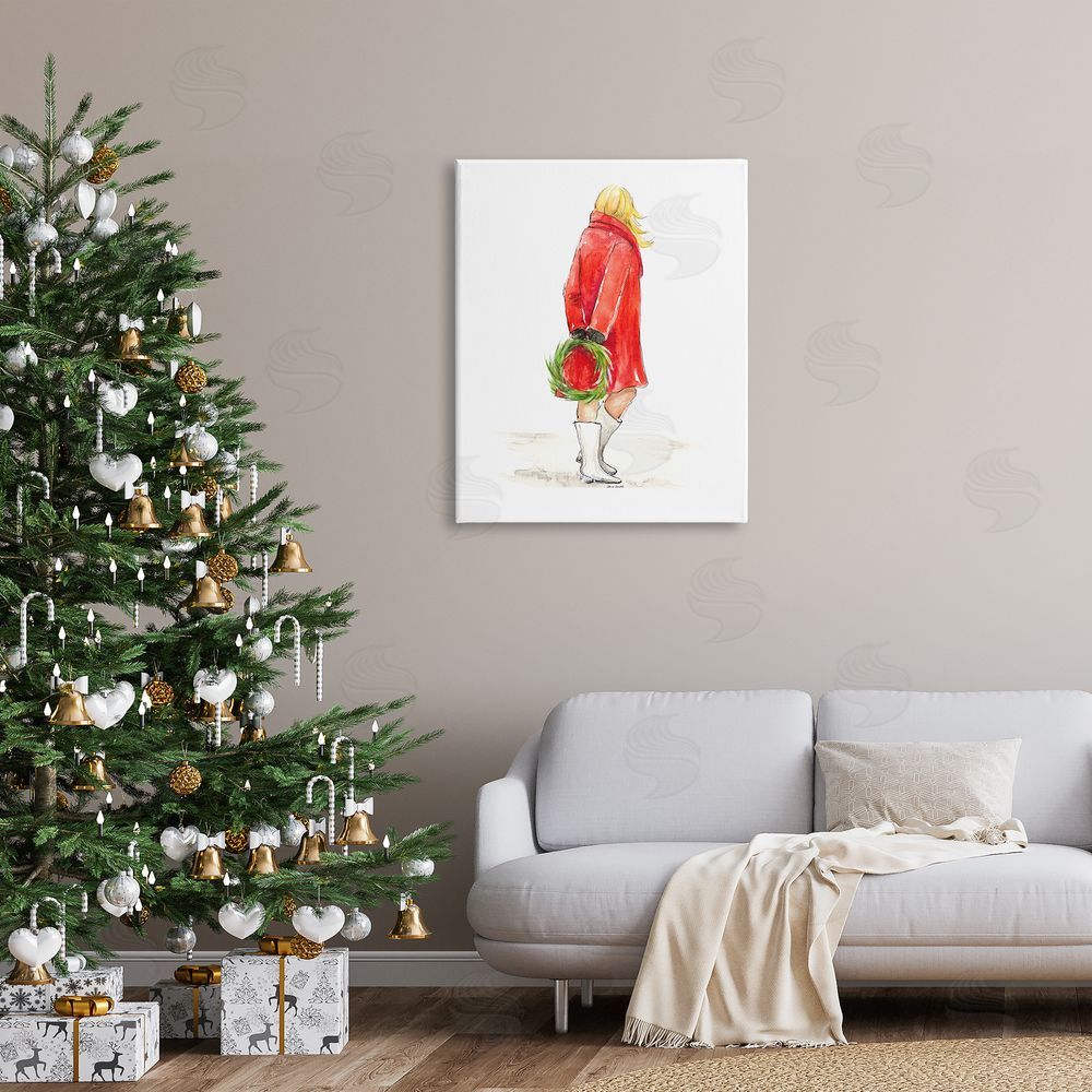 Lanie Loreth | Glam Fashion Red Jacket Christmas Woman with Wreath