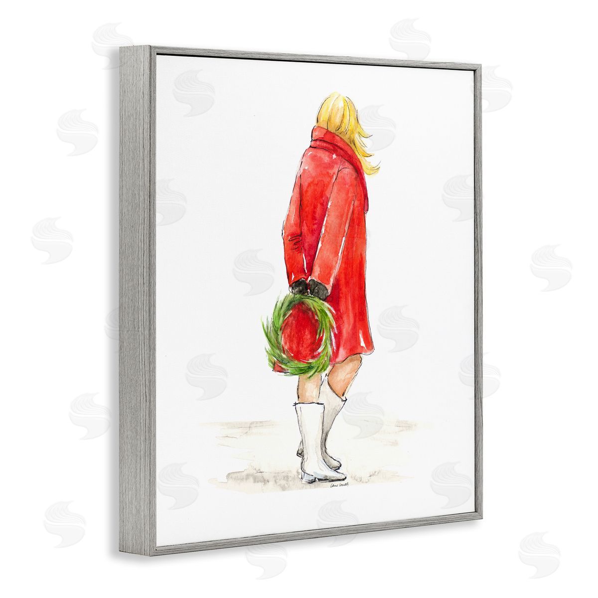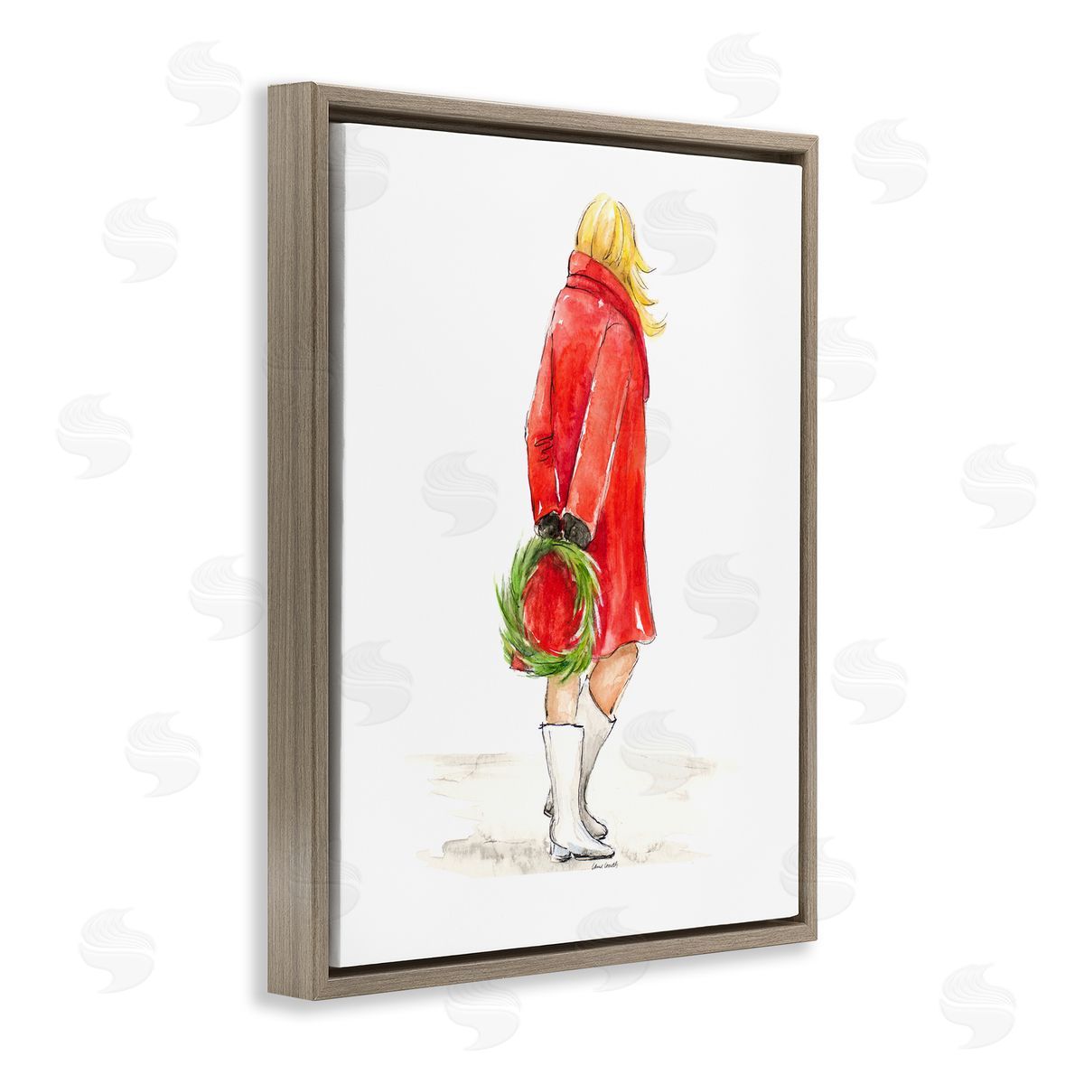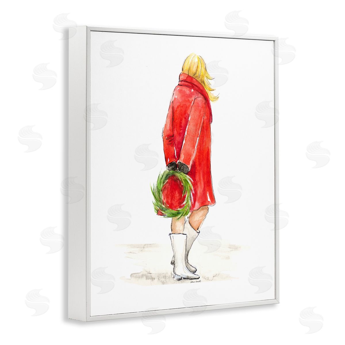 Lanie Loreth | Glam Fashion Red Jacket Christmas Woman with Wreath