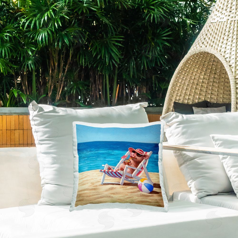 Lucia Heffernan | Pig with Beach Cocktail Printed Throw Pillow