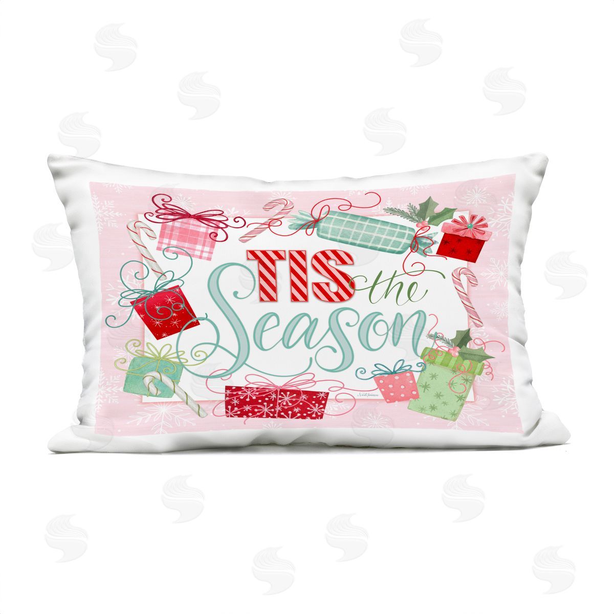 Nicole Tamarin | Pastel Pink Tis The Season Printed Throw Pillow