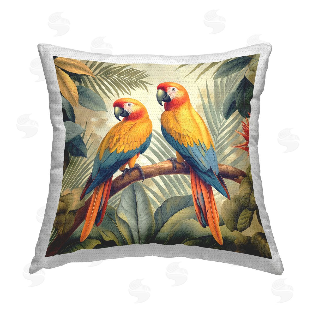 Steve Hunziker | Parrot Duo on Branch Printed Throw Pillow