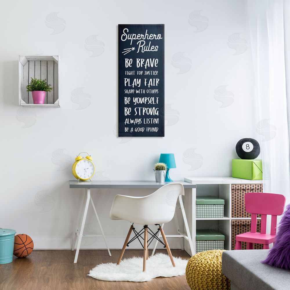 Stupell Studio | Brave Superhero Rules Kid's Blue Motivational List