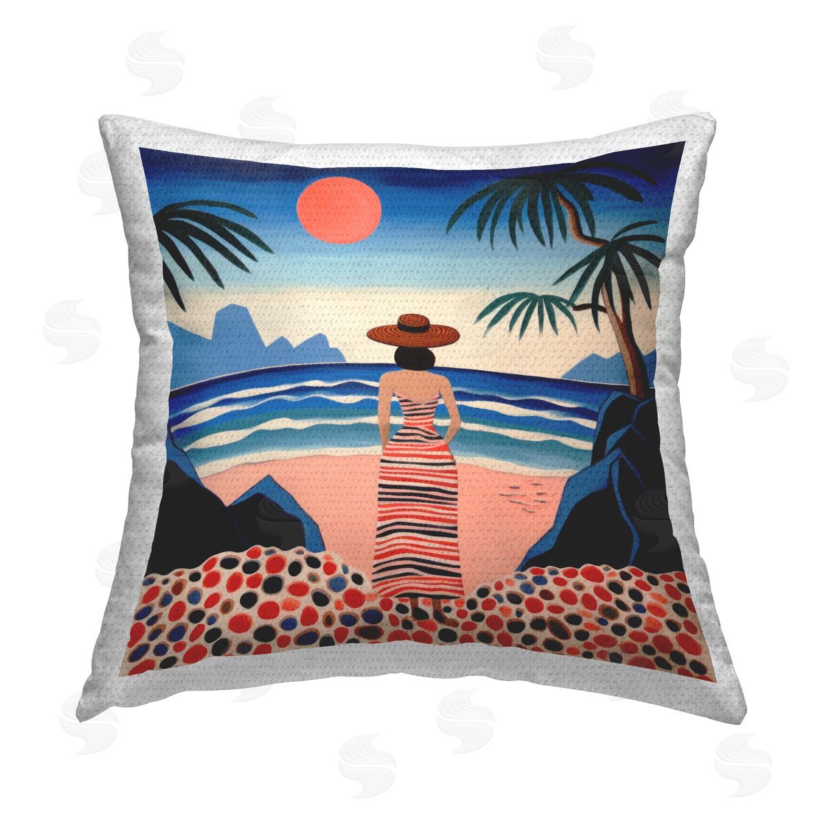 Lazar Studio | Patterned Female on Beach Printed Throw Pillow