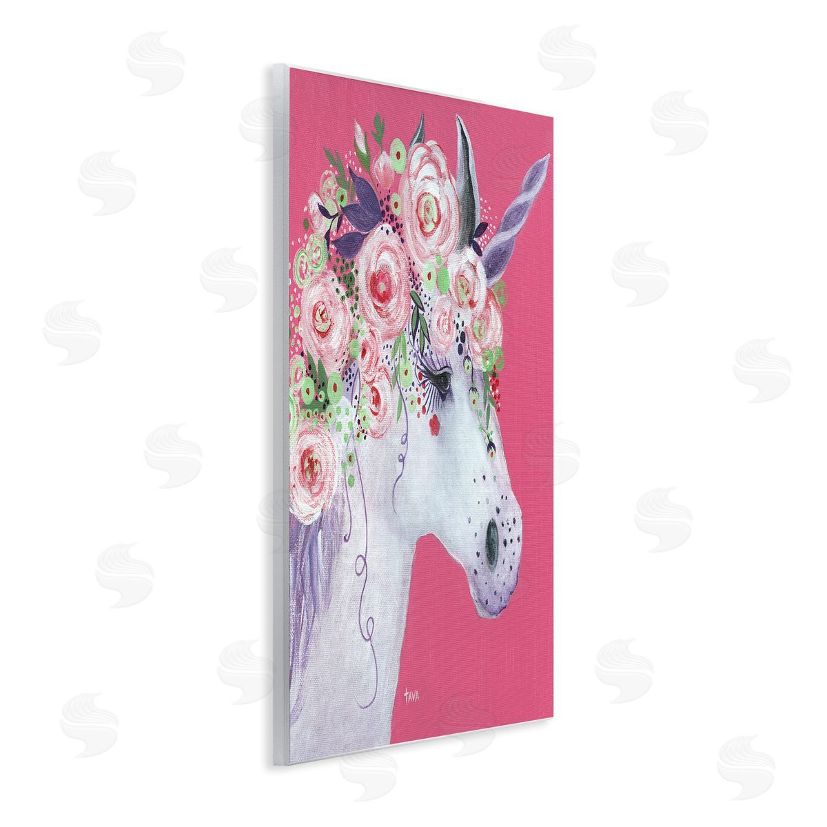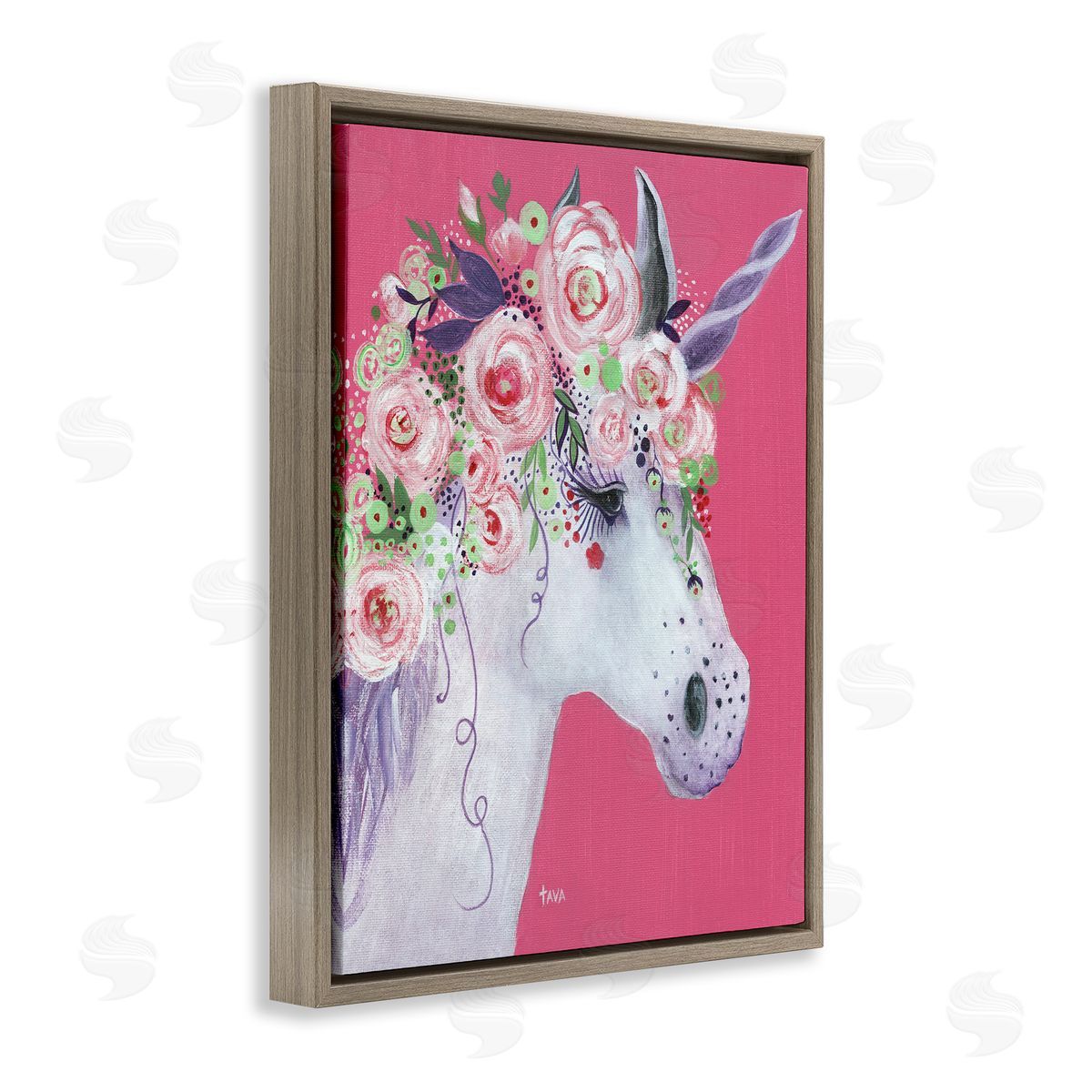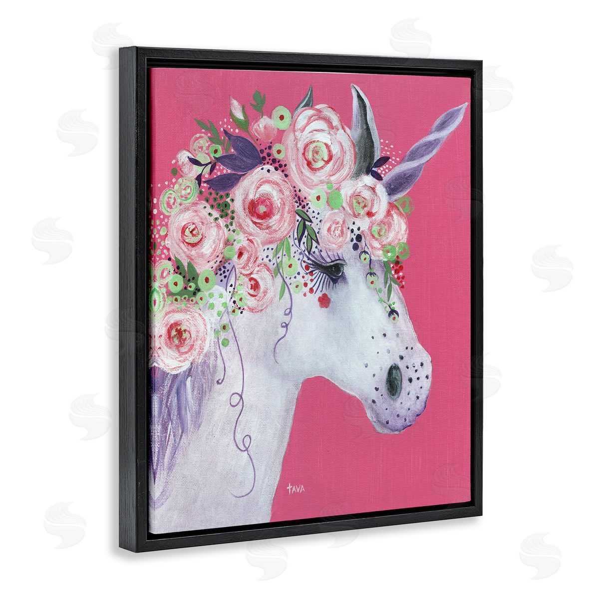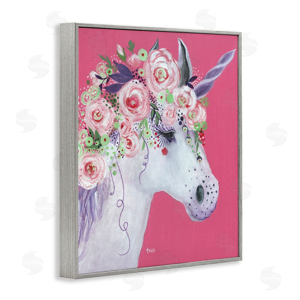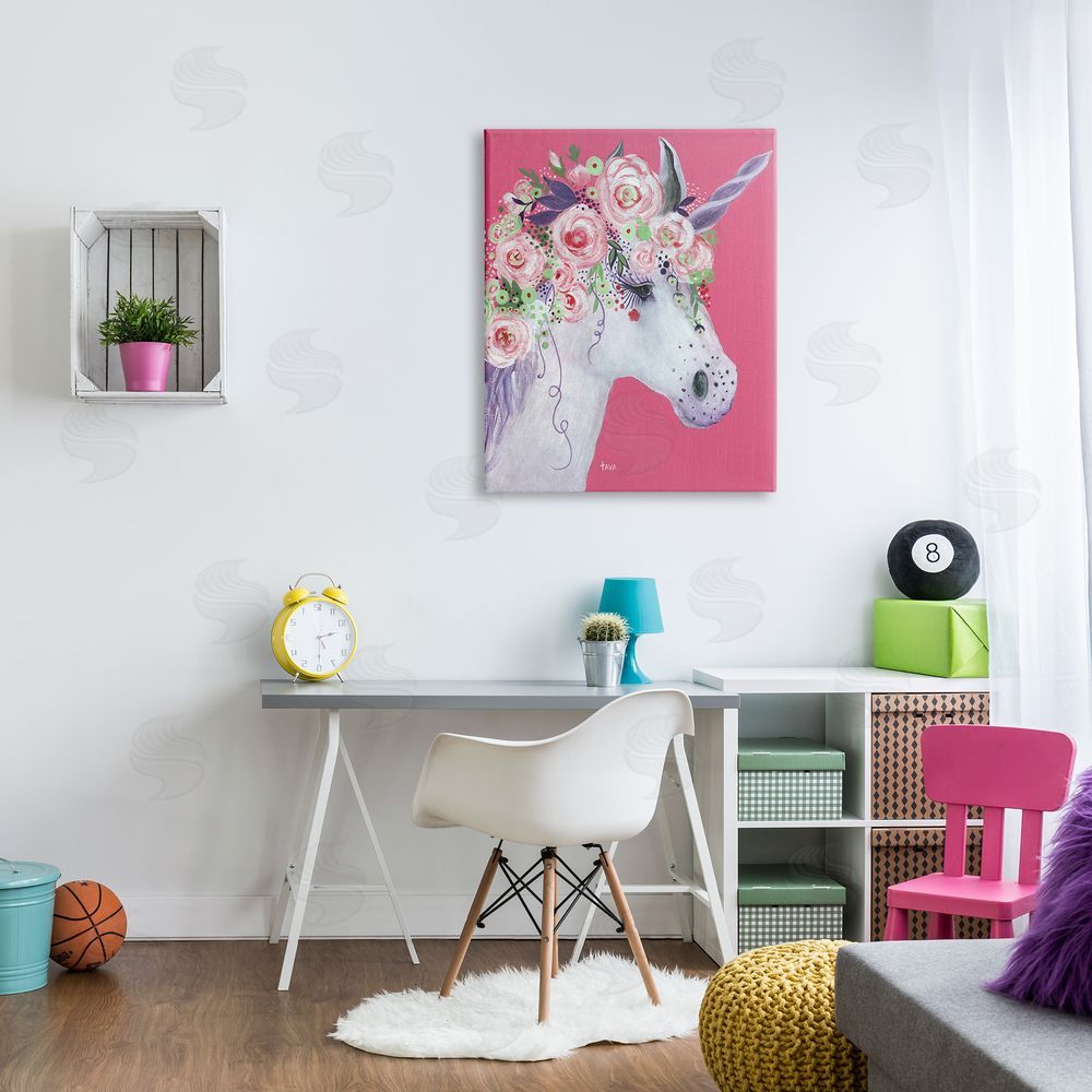 Janet Tava | Pink Florals Purple Unicorn Mythical Animal Portrait