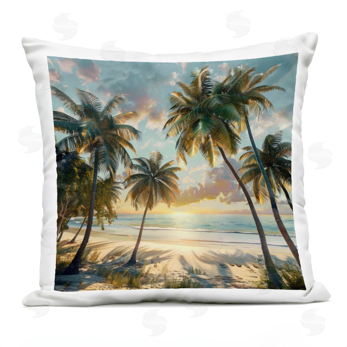 LSR Creative Studio | Tropical Beach Sunset Through Palms Printed Throw Pillow