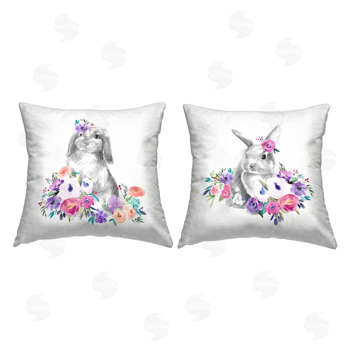 Jennifer Paxton Parker | Rabbits with Spring Florals Printed Throw Pillow Set
