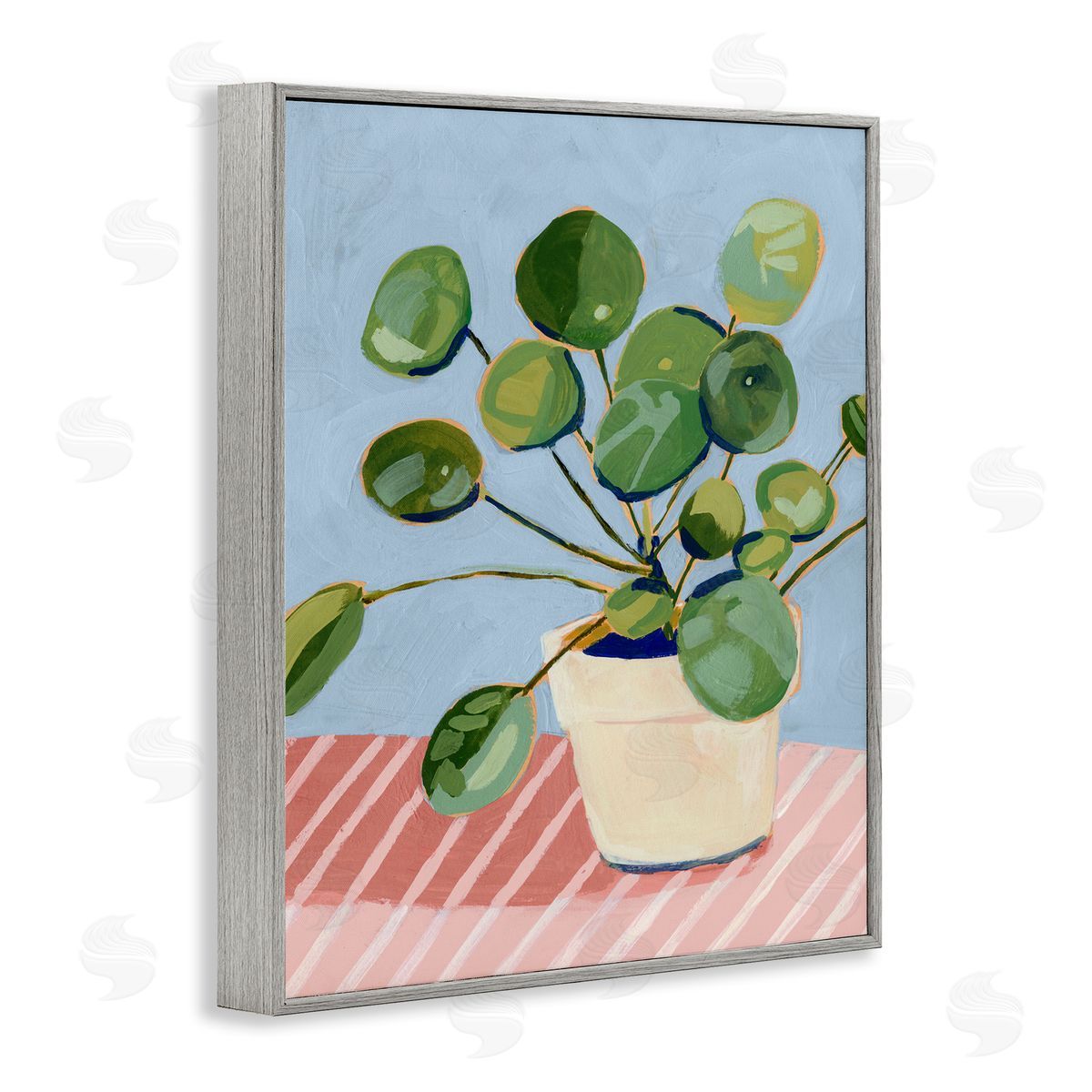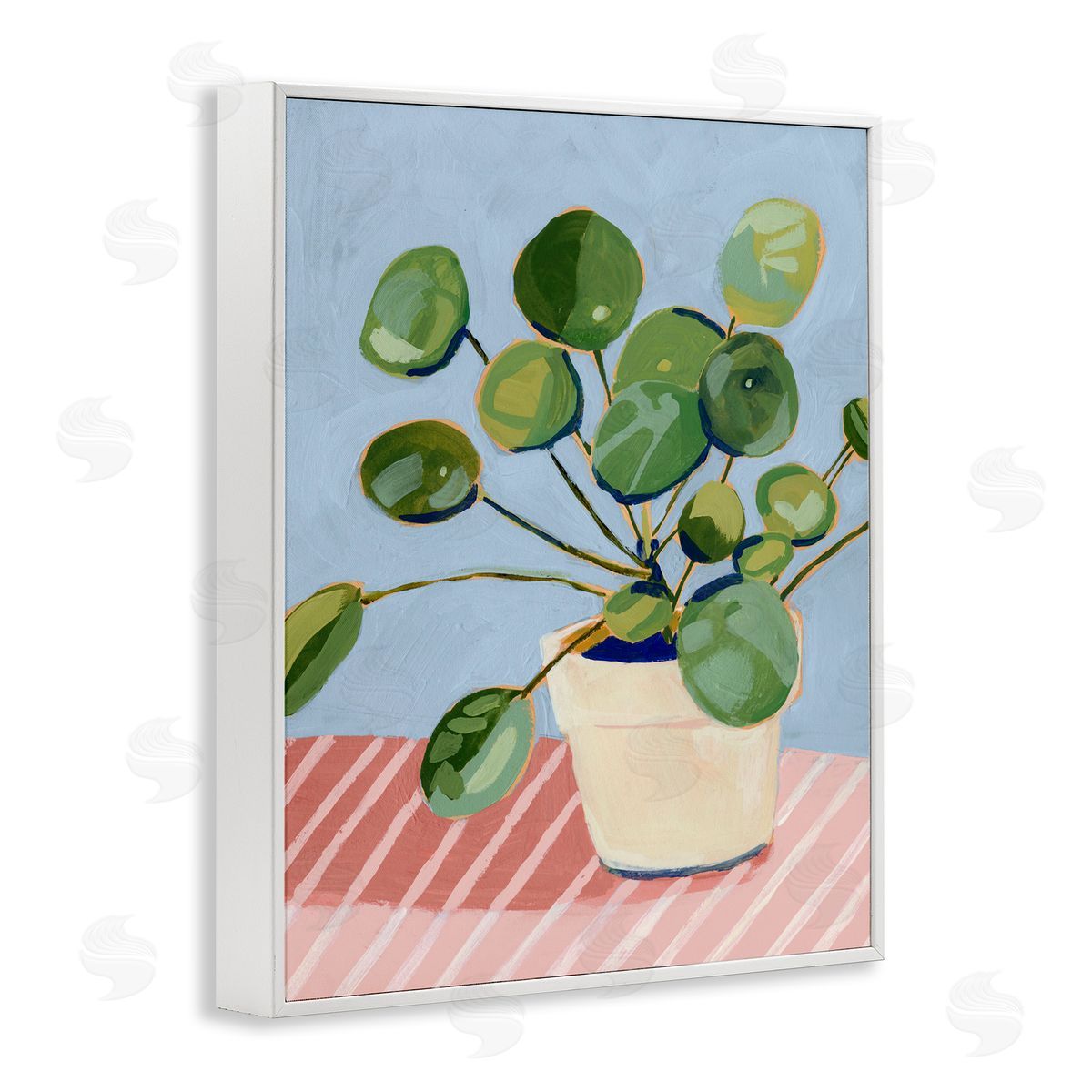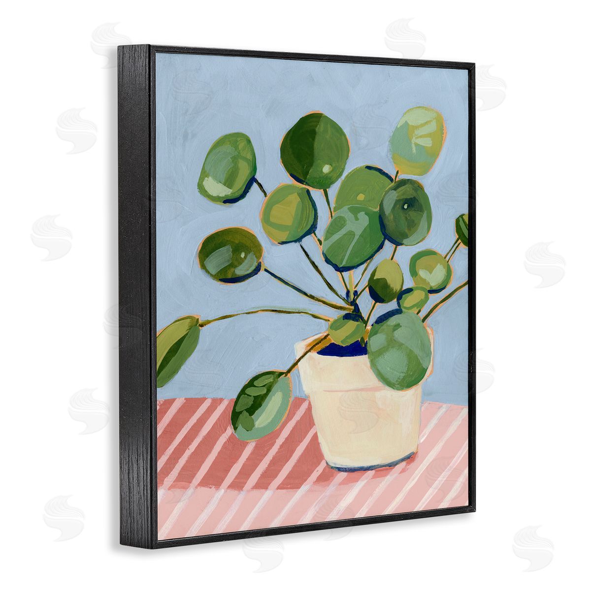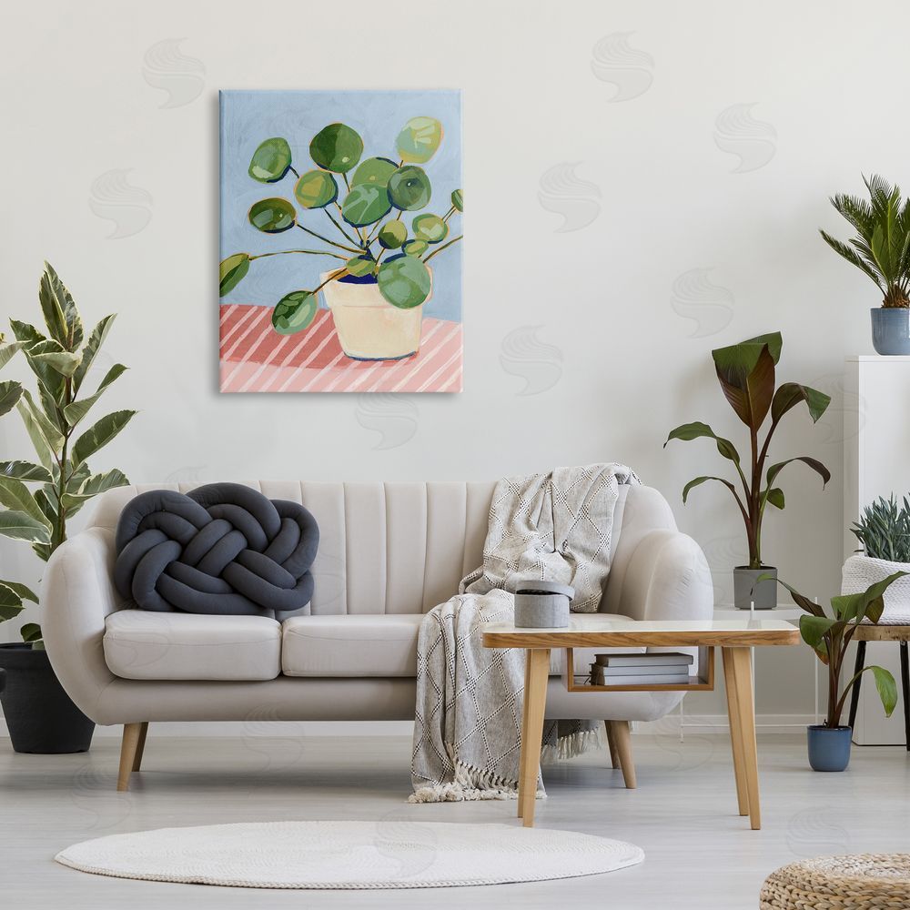 Victoria Borges | Green Potted Plant Round Leaves Pink Stripe Table