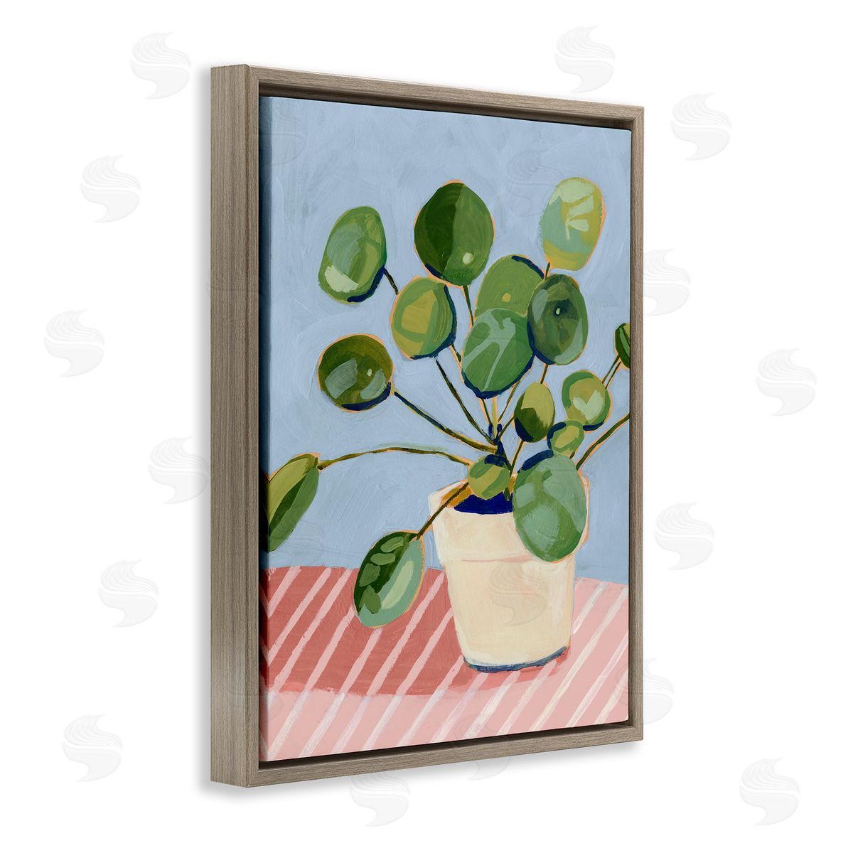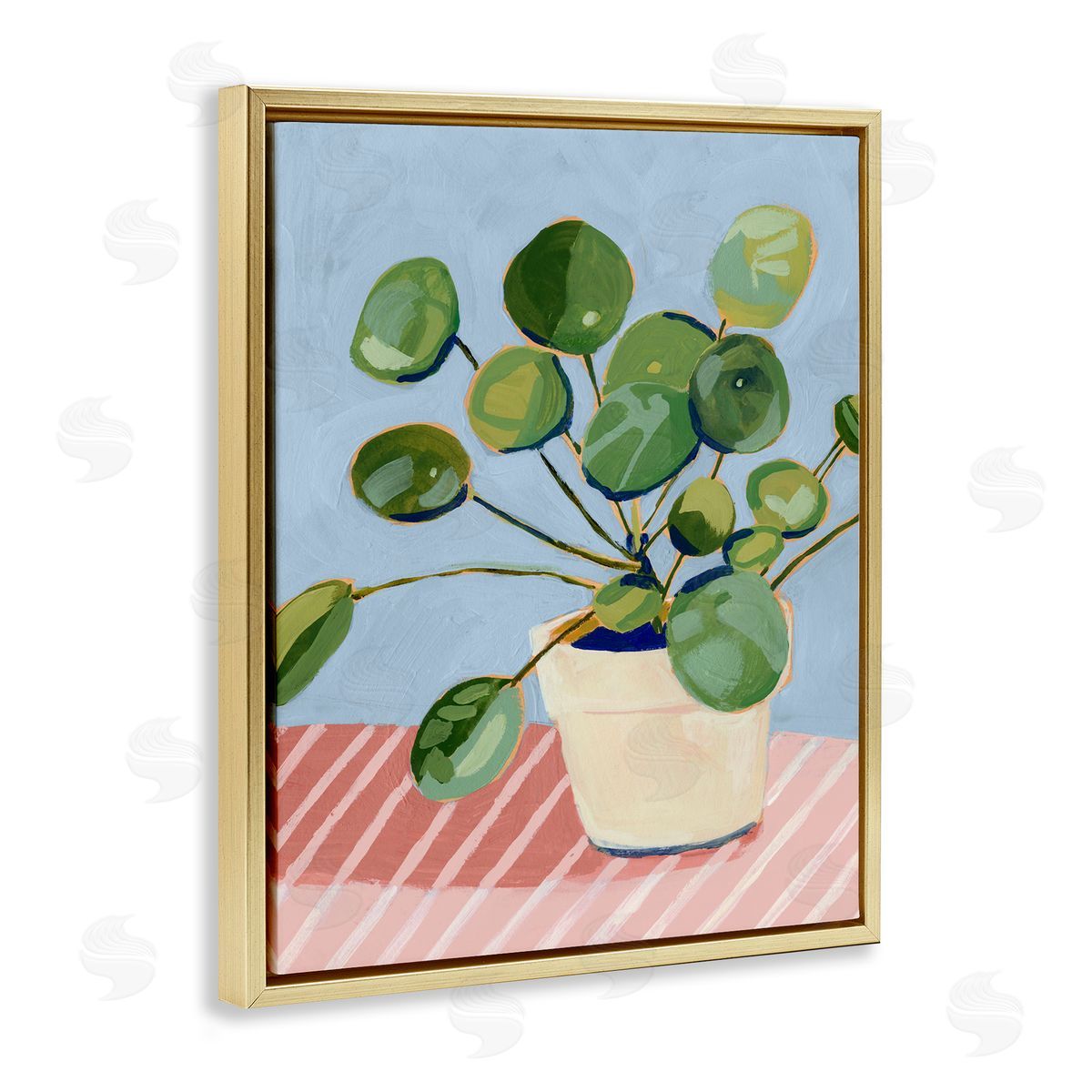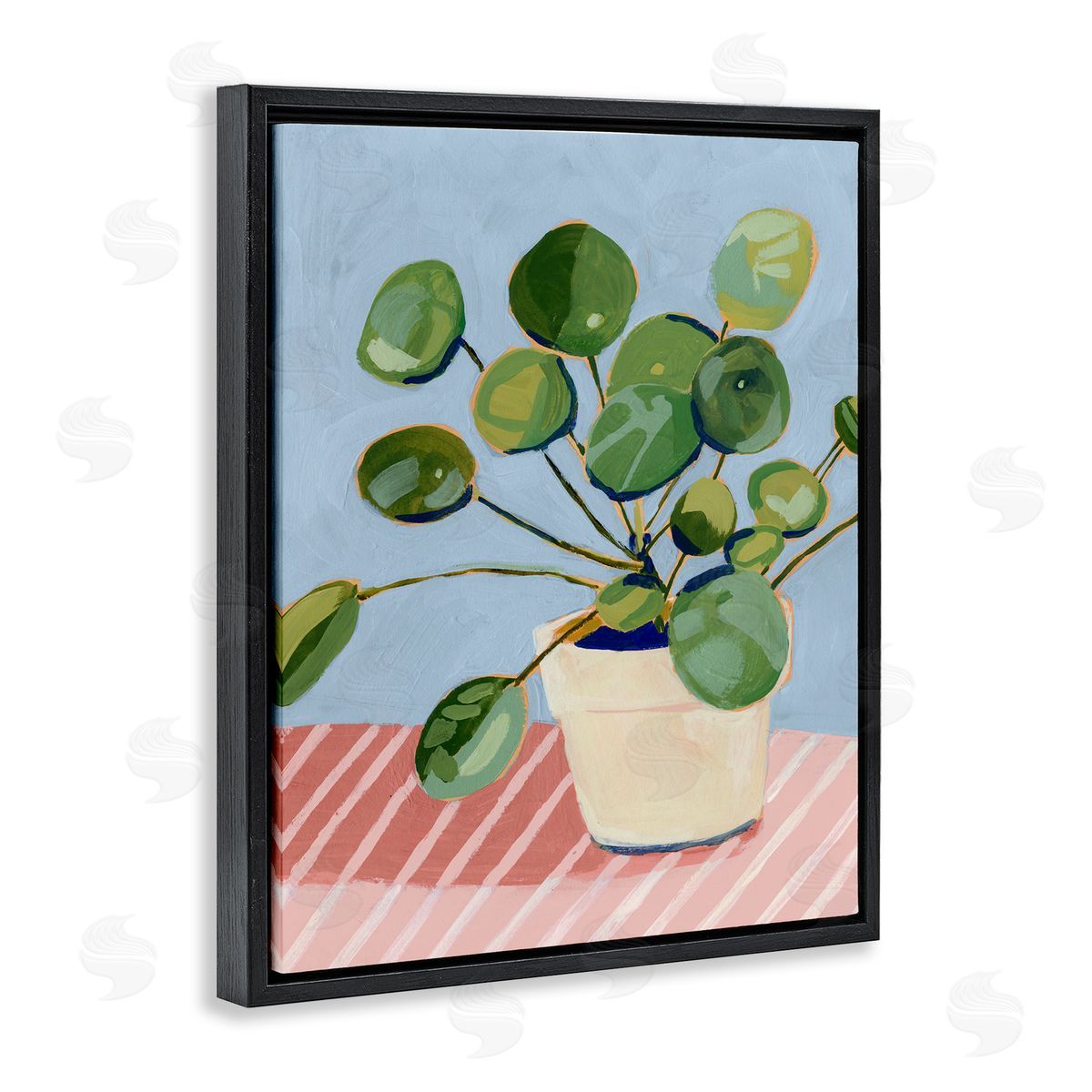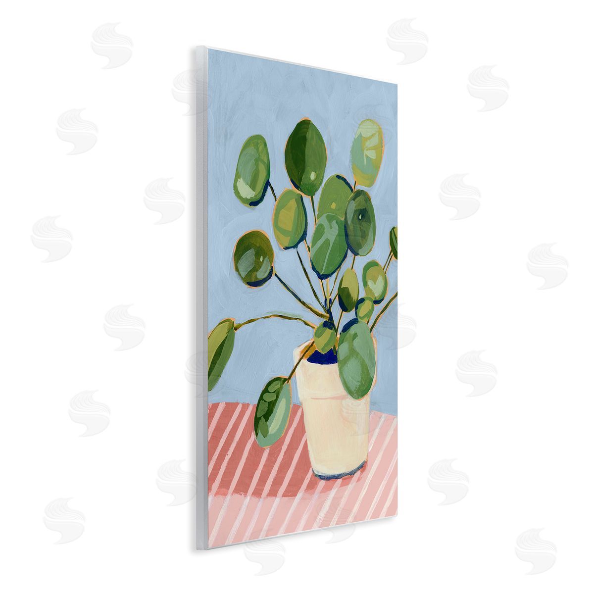 Victoria Borges | Green Potted Plant Round Leaves Pink Stripe Table