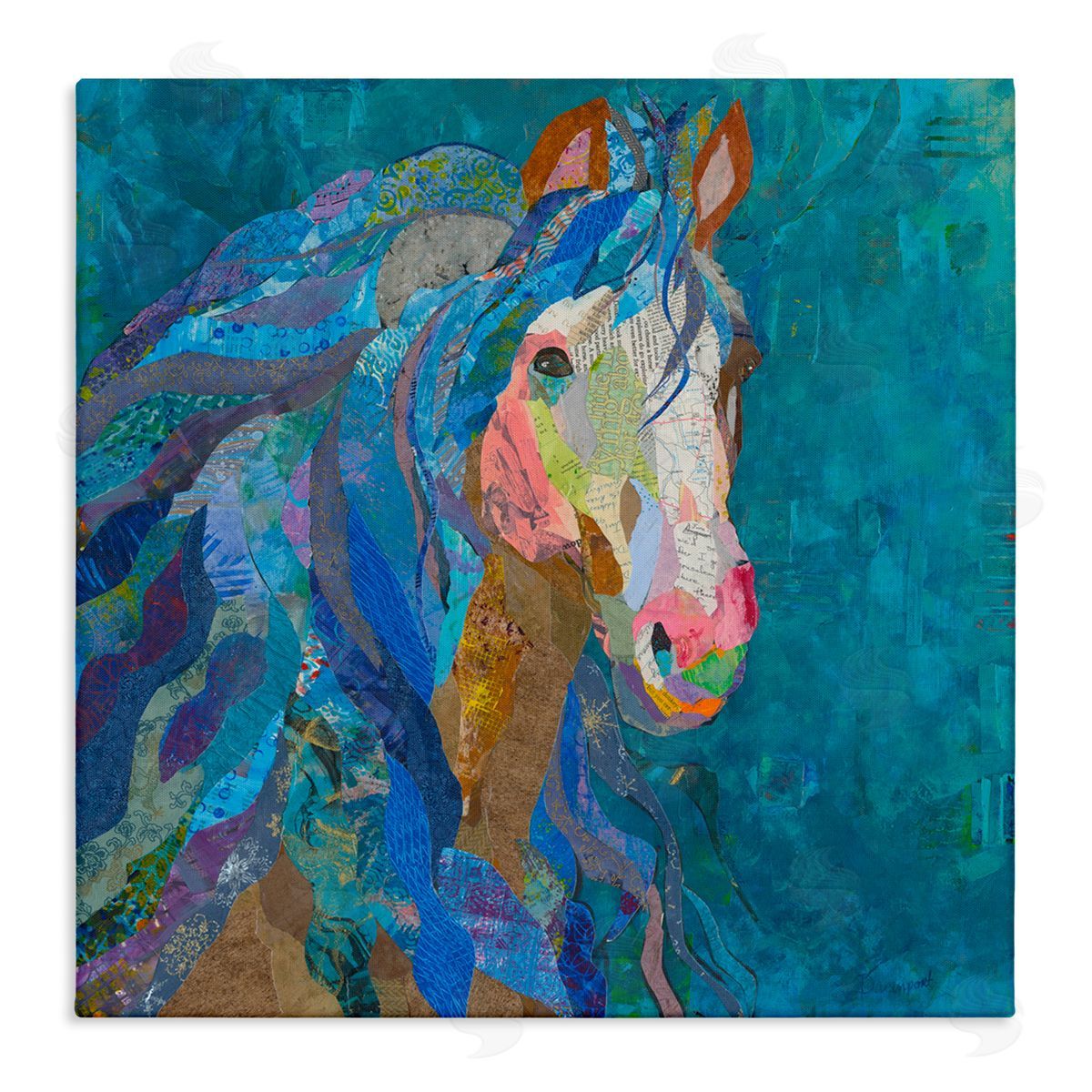 Violet Davenport became interested in art at a young age. She tried many techniques before arriving at collage: drawing, painting, paper mâché, jewelry-making, scrapbooking, and photography. Nothing seemed to hold her interest quite as much as collage. Starting with a simple class 15 years ago, she has been hooked ever since. She believes half the fun is painting her papers to use in later creations. Always on the lookout for materials to use in her work, her collage art incorporates old books, maps, sheets of music, restaurant menus, and other interesting paper finds. She rips up her painted papers and finds items to assemble them into vibrant birds, flowers, or animals exploding with color. She adores the messy, carefree process that collage offers.