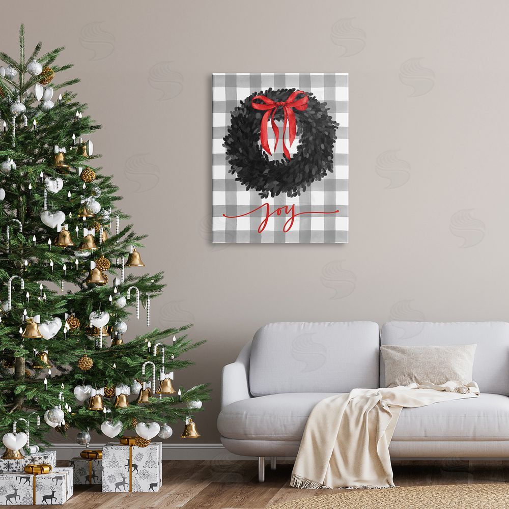 Lettered and Lined | Joy Calligraphy Holiday Wreath Plaid Red Bow